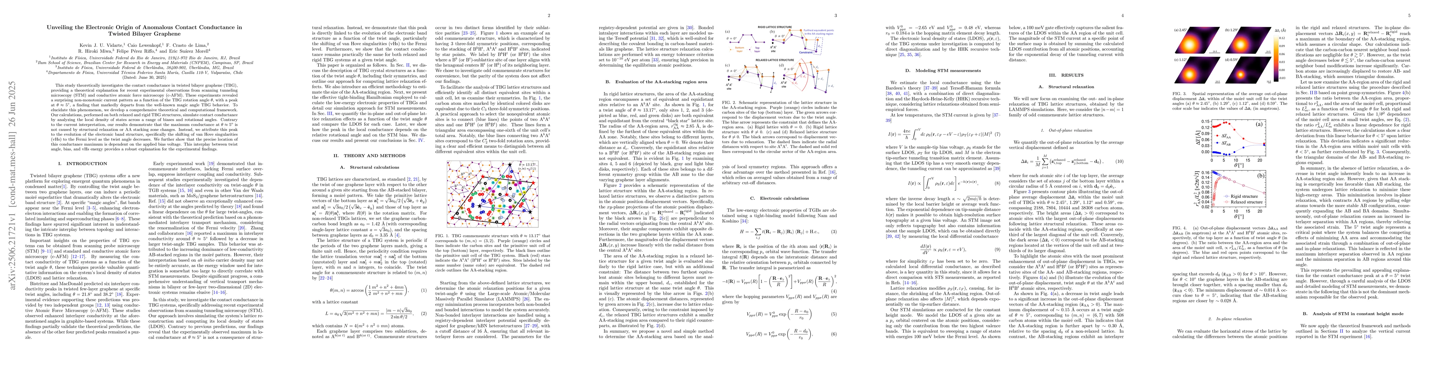 This study theoretically investigates the contact conductance in twisted bilayer graphene (TBG), providing a theoretical explanation for recent experimental observations from scanning tunneling microscopy (STM) and conductive atomic force microscopy (c-AFM). These experiments revealed a surprising non-monotonic current pattern as a function of the TBG rotation angle $\theta$, with a peak at $\theta \approx 5^\circ$, a finding that markedly departs from the well-known magic angle TBG behavior. To elucidate this phenomenon, we develop a comprehensive theoretical and computational framework. Our calculations, performed on both relaxed and rigid TBG structures, simulate contact conductance by analyzing the local density of states across a range of biases and rotational angles. Contrary to the current interpretation, our results demonstrate that the maximum conductance at $\theta \approx 5^{\rm o}$ is not caused by structural relaxation or AA stacking zone changes. Instead, we attribute this peak to the evolution of the electronic band structure, specifically the shifting of van Hove singularities (vHs) to the Fermi level as the twist angle decreases. We further show that the precise location of this conductance maximum is dependent on the applied bias voltage. This interplay between twist angle, bias, and vHs energy provides a robust explanation for the experimental findings.