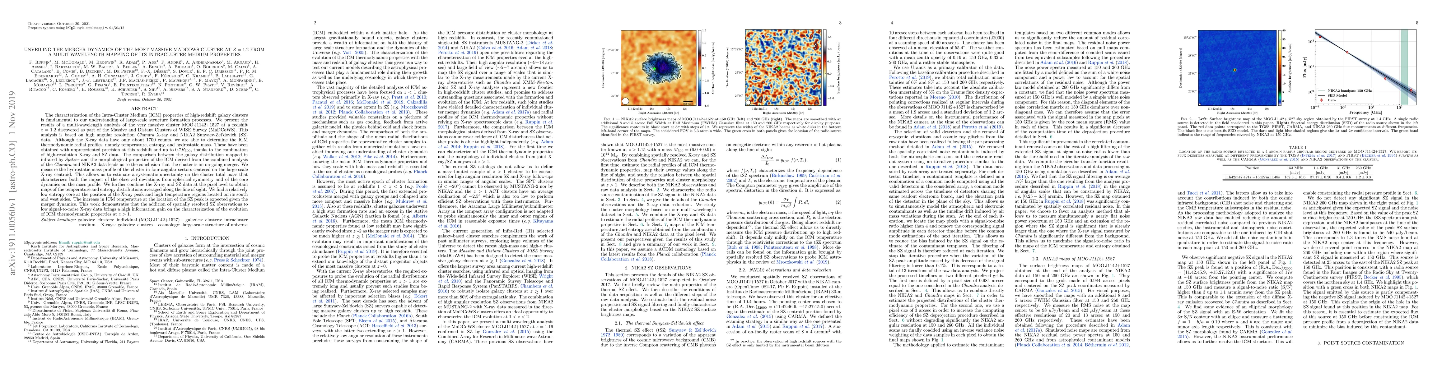 The characterization of the Intra-Cluster Medium (ICM) properties of high-redshift galaxy clusters is fundamental to our understanding of large-scale structure formation processes. We present the results of a multi-wavelength analysis of the very massive cluster MOO J1142$+$1527 at a redshift $z = 1.2$ discovered as part of the Massive and Distant Clusters of WISE Survey (MaDCoWS). This analysis is based on high angular resolution $Chandra$ X-ray and NIKA2 Sunyaev-Zel'dovich (SZ) data. Although the X-ray data have only about 1700 counts, we are able to determine the ICM thermodynamic radial profiles, namely temperature, entropy, and hydrostatic mass. These have been obtained with unprecedented precision at this redshift and up to $0.7R_{500}$, thanks to the combination of high-resolution X-ray and SZ data. The comparison between the galaxy distribution mapped in infrared by $Spitzer$ and the morphological properties of the ICM derived from the combined analysis of the $Chandra$ and NIKA2 data leads us to the conclusion that the cluster is an on-going merger. We measure the hydrostatic mass profile of the cluster in four angular sectors centered on the large-scale X-ray centroid. This allows us to estimate a systematic uncertainty on the cluster total mass that characterizes both the impact of the observed deviations from spherical symmetry and of the core dynamics on the mass profile. We further combine the X-ray and SZ data at the pixel level to obtain maps of the temperature and entropy distributions averaged along the line of sight. We find a relatively low entropy core at the position of the X-ray peak and high temperature regions located on its south and west sides. The increase in ICM temperature at the location of the SZ peak is expected given the merger dynamics. (abridged)