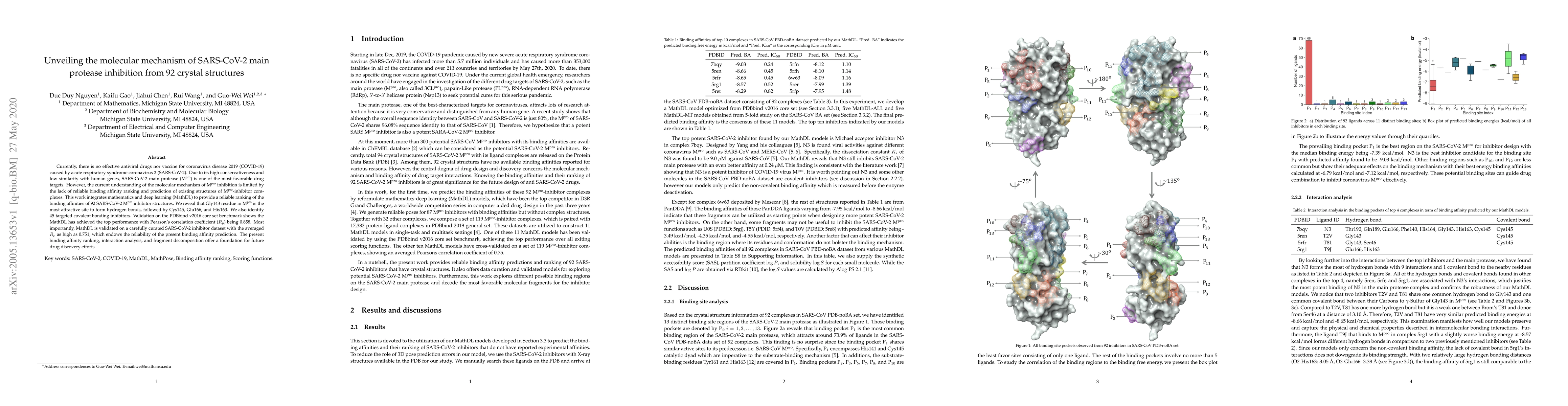 This study combines mathematics and deep learning to rank the binding affinities of 92 SARS-CoV-2 main protease inhibitor structures, identifying Gly143 as the most attractive site for hydrogen bonding. The proposed MathDL model achieves high predictive accuracy, offering a foundation for future drug discovery targeting SARS-CoV-2.