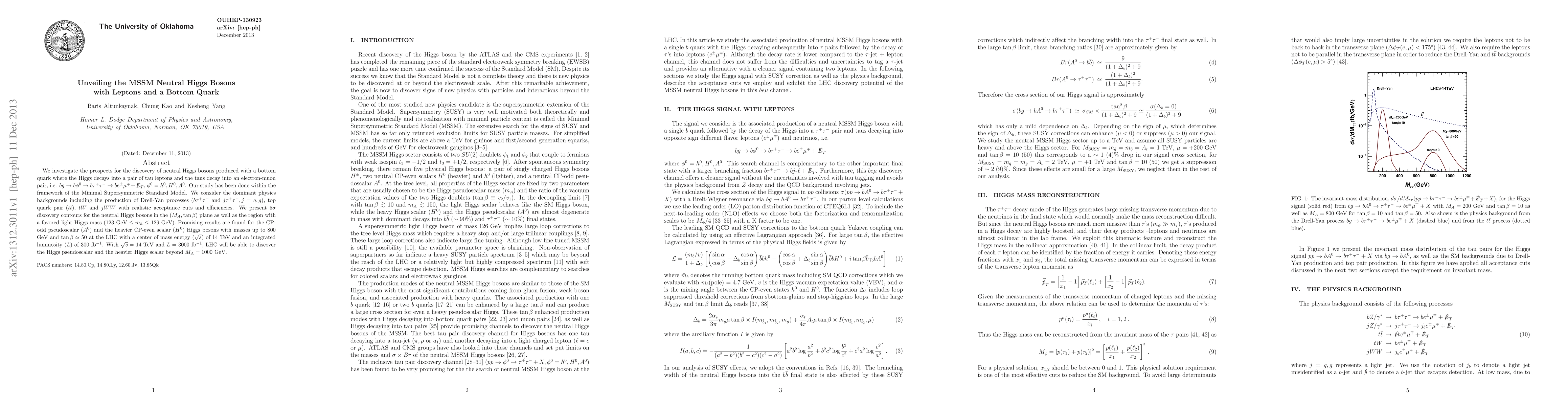 This paper explores the potential for discovering neutral Higgs bosons in the Minimal Supersymmetric Standard Model (MSSM) via their production with a bottom quark, followed by decay into tau leptons and subsequently into electron-muon pairs, at the LHC. It finds promising results for the CP-odd pseudoscalar and heavier CP-even scalar Higgs bosons up to 800 GeV with $\tan\beta \simeq 50$, and beyond 1000 GeV with higher luminosity.