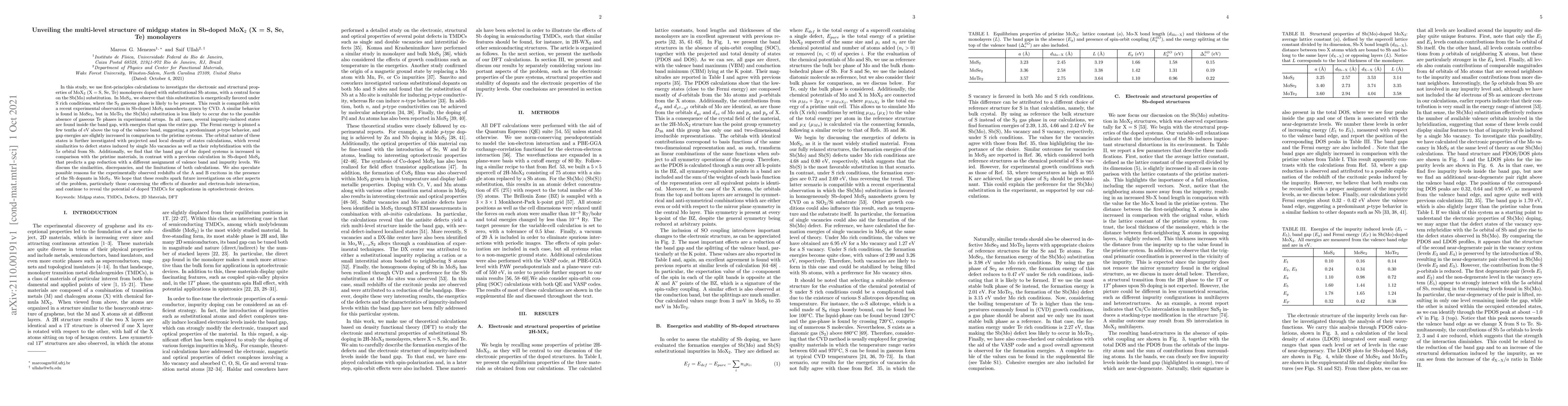 Researchers used DFT calculations to study Sb-doped MoX$_2$ monolayers (S, Se, Te) and found that substitutional Sb atoms create impurity-induced states in the band gap, increasing the band gap and leading to p-type behavior, with implications for optoelectronic devices.