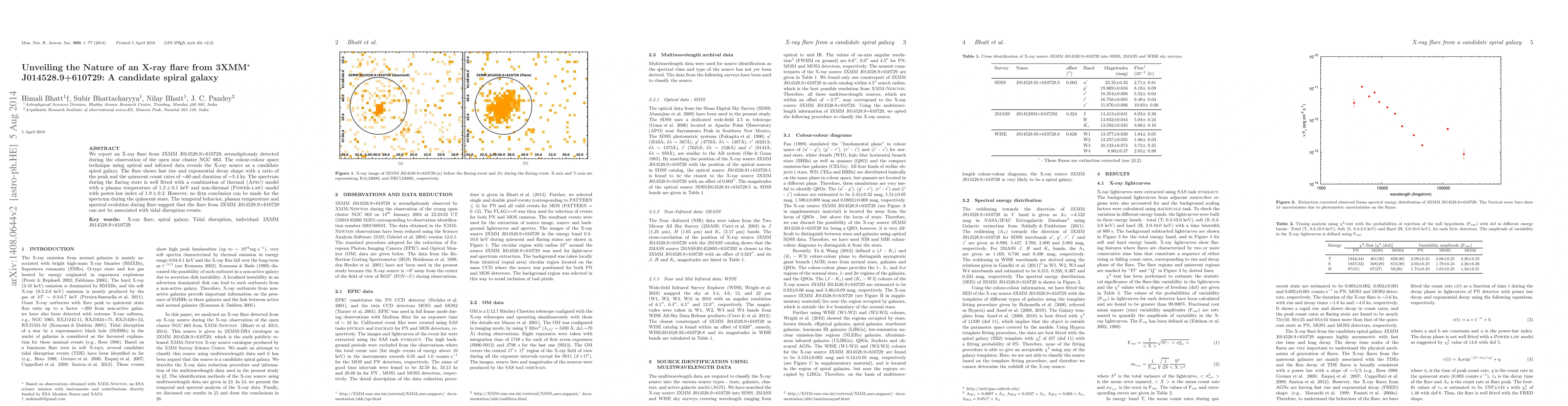 This paper reports an X-ray flare from 3XMM J014528.9+610729, identified as a candidate spiral galaxy, which exhibited a fast rise and exponential decay with a significant increase in count rate. The flare's spectrum during activity combines thermal and non-thermal components, but no clear spectrum is found during the quiescent state, ruling out tidal disruption events.