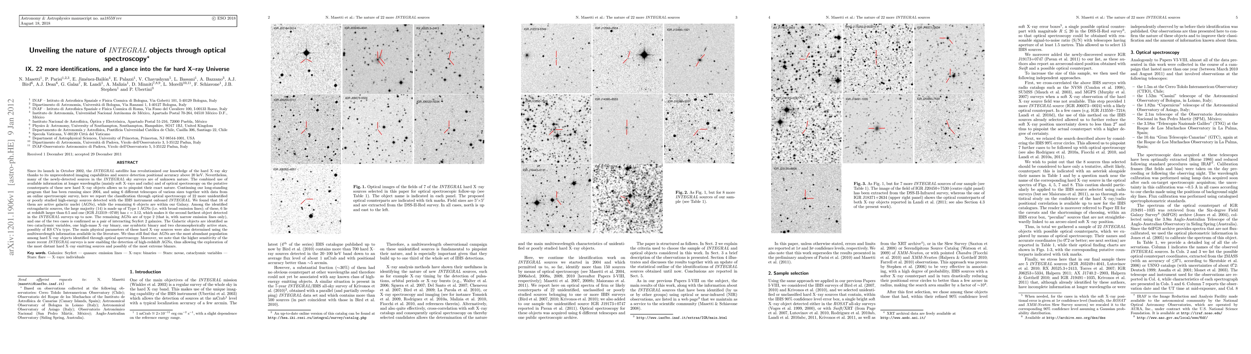 (Abridged) Since its launch in October 2002, the INTEGRAL satellite has revolutionized our knowledge of the hard X-ray sky thanks to its unprecedented imaging capabilities and source detection positional accuracy above 20 keV. Nevertheless, many of the newly-detected sources in the INTEGRAL sky surveys are of unknown nature. The combined use of available information at longer wavelengths (mainly soft X-rays and radio) and of optical spectroscopy on the putative counterparts of these new hard X-ray objects allows us to pinpoint their exact nature. Continuing our long-standing program that has been running since 2004, and using 6 different telescopes of various sizes, we report the classification through optical spectroscopy of 22 more unidentified or poorly studied high-energy sources detected with the IBIS instrument onboard INTEGRAL. We found that 16 of them are active galactic nuclei (AGNs), while the remaining 6 objects are within our Galaxy. Among the identified extragalactic sources, 14 are Type 1 AGNs; of these, 6 lie at redshift larger than 0.5 and one has z = 3.12, which makes it the second farthest object detected in the INTEGRAL surveys up to now. The remaining AGNs are of type 2, and one of them is a pair of interacting Seyfert 2 galaxies. The Galactic objects are identified as two cataclysmic variables, one high-mass X-ray binary, one symbiotic binary and two chromospherically active stars. We thus still find that AGNs are the most abundant population among hard X-ray objects identified through optical spectroscopy. Moreover, we note that the higher sensitivity of the more recent INTEGRAL surveys is now enabling the detection of high-redshift AGNs, thus allowing the exploration of the most distant hard X-ray emitting sources and possibly of the most extreme blazars.