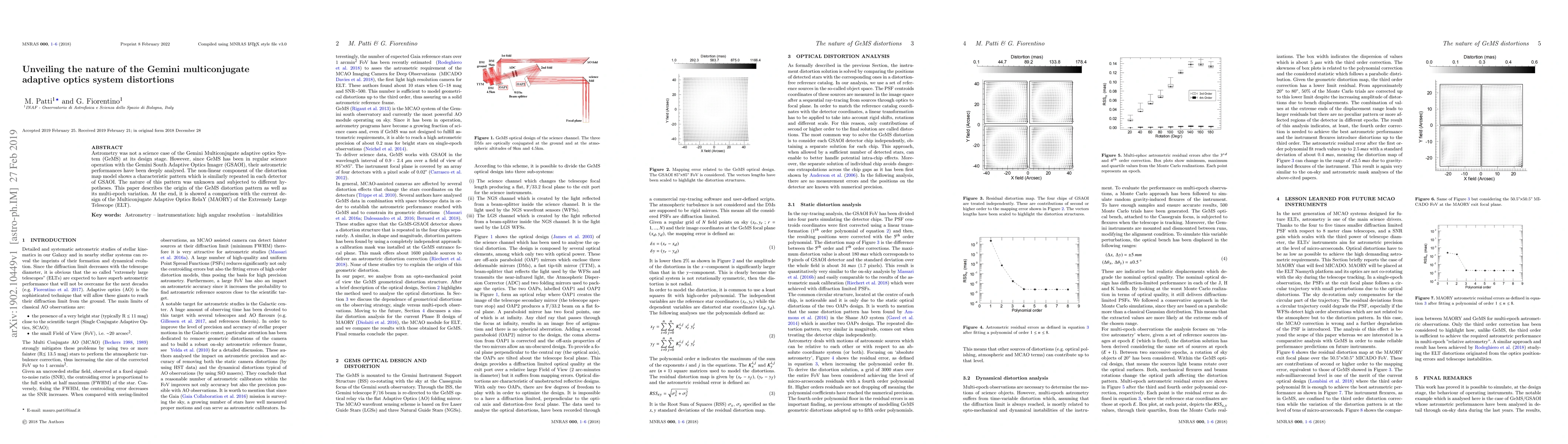 Astrometry was not a science case of the Gemini Multiconjugate adaptive optics System (GeMS) at its design stage. However, since GeMS has been in regular science operation with the Gemini South Adaptive Optics Imager (GSAOI), their astrometric performances have been deeply analysed. The non-linear component of the distortion map model shows a characteristic pattern which is similarly repeated in each detector of GSAOI. The nature of this pattern was unknown and subjected to different hypotheses. This paper describes the origin of the GeMS distortion pattern as well as its multi-epoch variation. At the end, it is showed a comparison with the current design of the Multiconjugate Adaptive Optics RelaY (MAORY) of the Extremely Large Telescope (ELT).