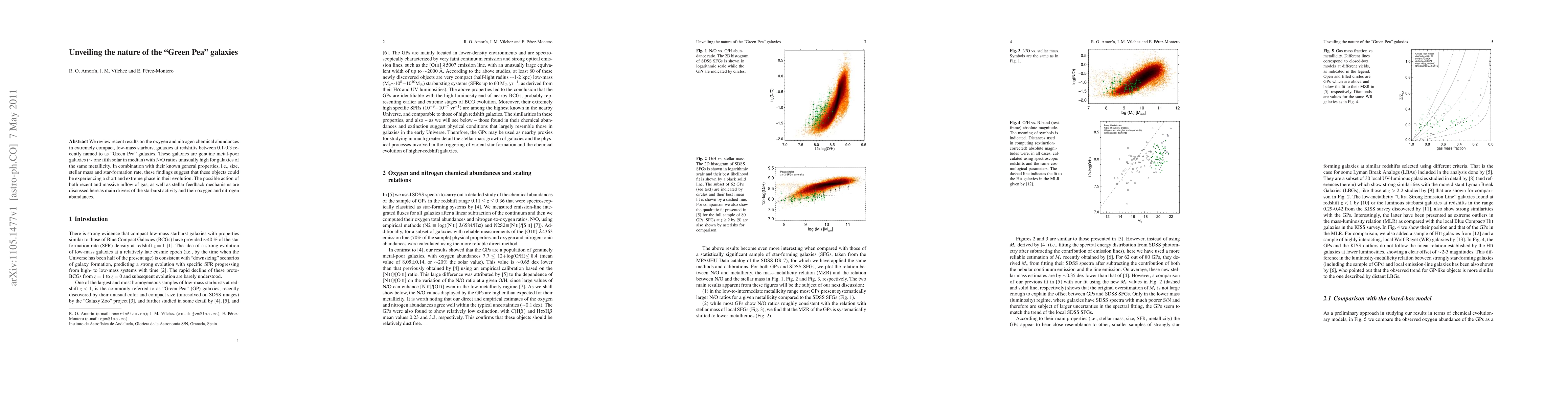 We review recent results on the oxygen and nitrogen chemical abundances in extremely compact, low-mass starburst galaxies at redshifts between 0.1-0.3 recently named to as "Green Pea" galaxies. These galaxies are genuine metal-poor galaxies ($\sim$ one fifth solar) with N/O ratios unusually high for galaxies of the same metallicity. In combination with their known general properties, i.e., size, stellar mass and star-formation rate, these findings suggest that these objects could be experiencing a short and extreme phase in their evolution. The possible action of both recent and massive inflow of gas, as well as stellar feedback mechanisms are discussed here as main drivers of the starburst activity and their oxygen and nitrogen abundances.