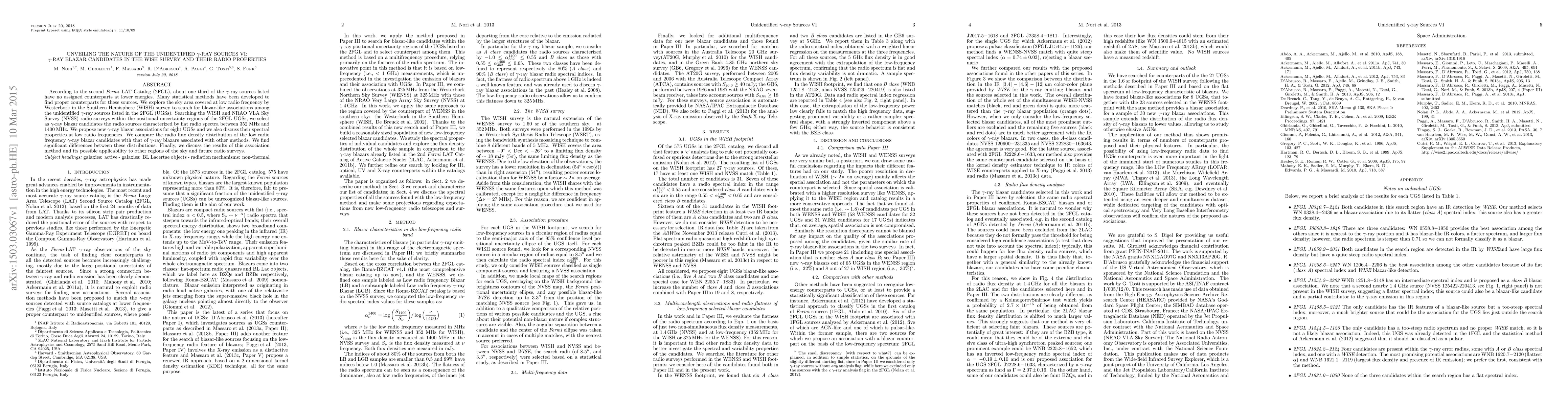 According to the second Fermi LAT Catalog (2FGL), about one third of the gamma-ray sources listed have no assigned counterparts at lower energies. Many statistical methods have been developed to find proper counterparts for these sources. We explore the sky area covered at low radio frequency by Westerbork in the Southern Hemisphere (WISH) survey to search for blazar-like associations among the unidentified gamma-ray sources listed in the 2FGL (UGSs). Searching the WISH and NRAO VLA Sky Survey (NVSS) radio surveys within the positional uncertainty regions of the 2FGL UGSs, we select as gamma-ray blazar candidates the radio sources characterized by flat radio spectra between 352 MHz and 1400 MHz. We propose new gamma-ray blazar associations for eight UGSs and we also discuss their spectral properties at low radio frequencies. We compare the radio flux density distribution of the low radio frequency gamma-ray blazar candidates with that of gamma-ray blazars associated with other methods. We find significant differences between these distributions. Finally, we discuss the results of this association method and its possible applicability to other regions of the sky and future radio surveys.