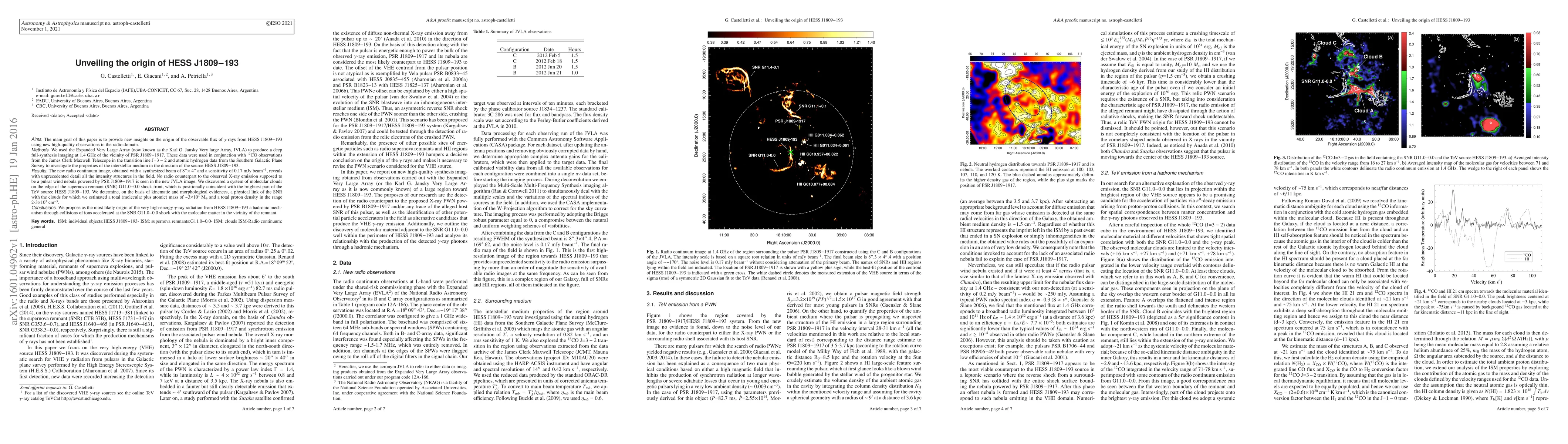 This paper uses new high-quality radio observations from the JVLA to investigate the origin of gamma rays from HESS J1809-193, revealing no radio counterpart to the X-ray emission. The study proposes a hadronic mechanism involving collisions of ions accelerated by the SNR G11.0-0.0 shock front with nearby molecular clouds as the likely source of the gamma-ray radiation.