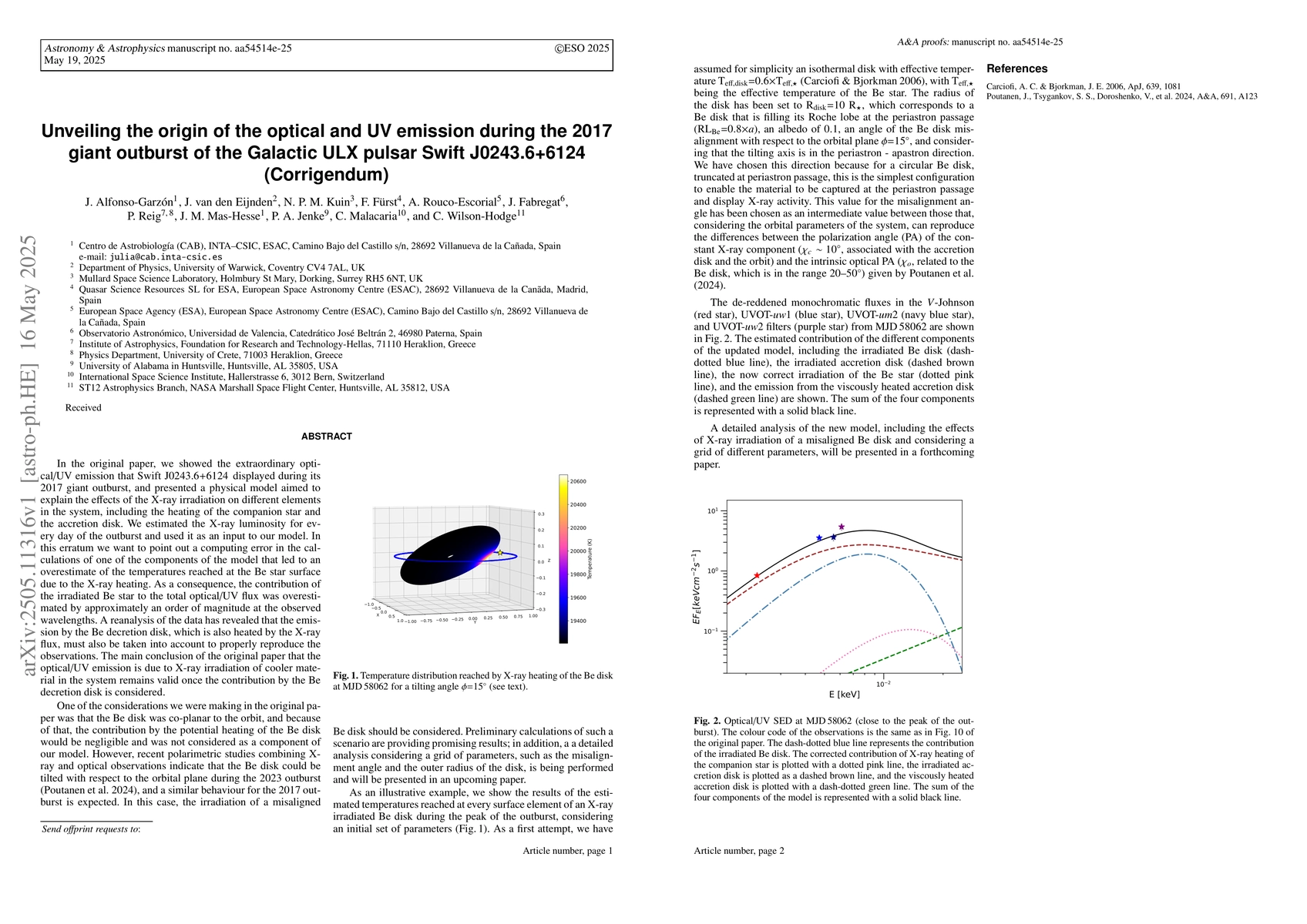 The research corrected an error in the modeling of the optical/UV emission from Swift J0243.6+6124 during its 2017 outburst, incorporating X-ray irradiation of a misaligned Be disk into the model.