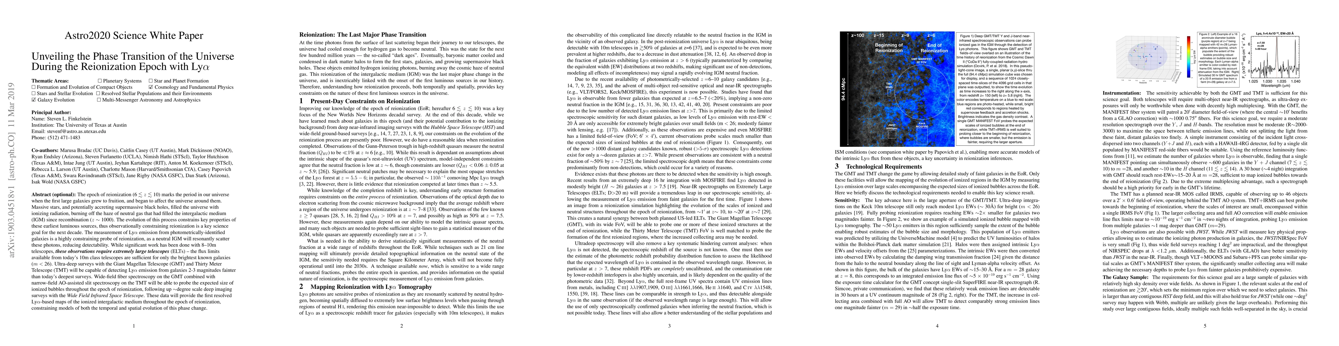 This paper explores the phase transition of the universe during the reionization epoch (6 < z < 10) using Lyman-alpha emission from galaxies, aiming to constrain the properties of the first luminous sources. Upcoming ultra-deep surveys with ELTs like GMT and TMT will reveal ionized bubbles and provide detailed maps of the ionized intergalactic medium.