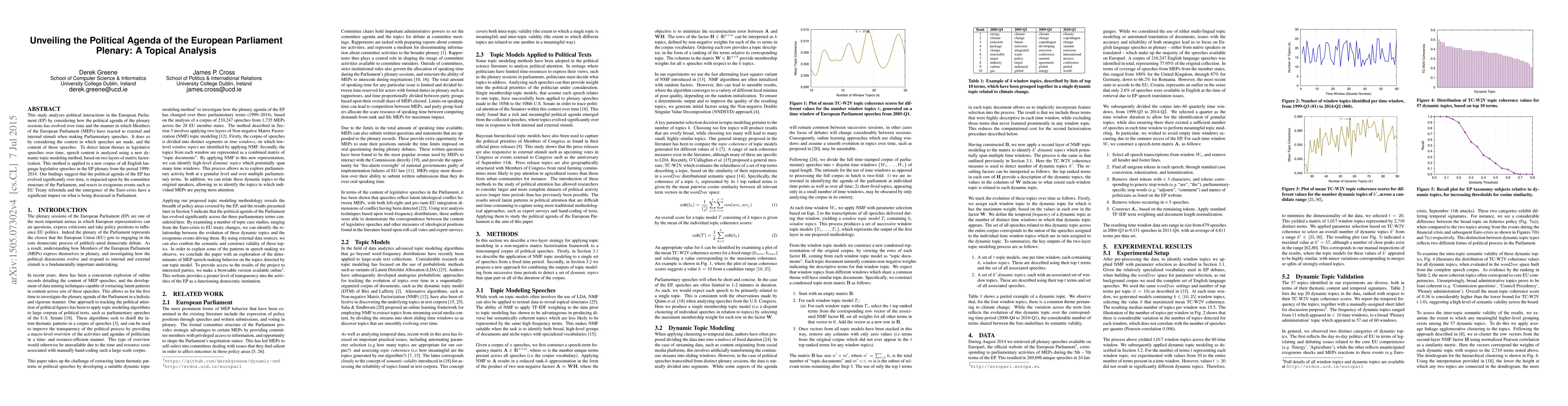 This study analyzes political interactions in the European Parliament (EP) by considering how the political agenda of the plenary sessions has evolved over time and the manner in which Members of the European Parliament (MEPs) have reacted to external and internal stimuli when making Parliamentary speeches. It does so by considering the context in which speeches are made, and the content of those speeches. To detect latent themes in legislative speeches over time, speech content is analyzed using a new dynamic topic modeling method, based on two layers of matrix factorization. This method is applied to a new corpus of all English language legislative speeches in the EP plenary from the period 1999-2014. Our findings suggest that the political agenda of the EP has evolved significantly over time, is impacted upon by the committee structure of the Parliament, and reacts to exogenous events such as EU Treaty referenda and the emergence of the Euro-crisis have a significant impact on what is being discussed in Parliament.