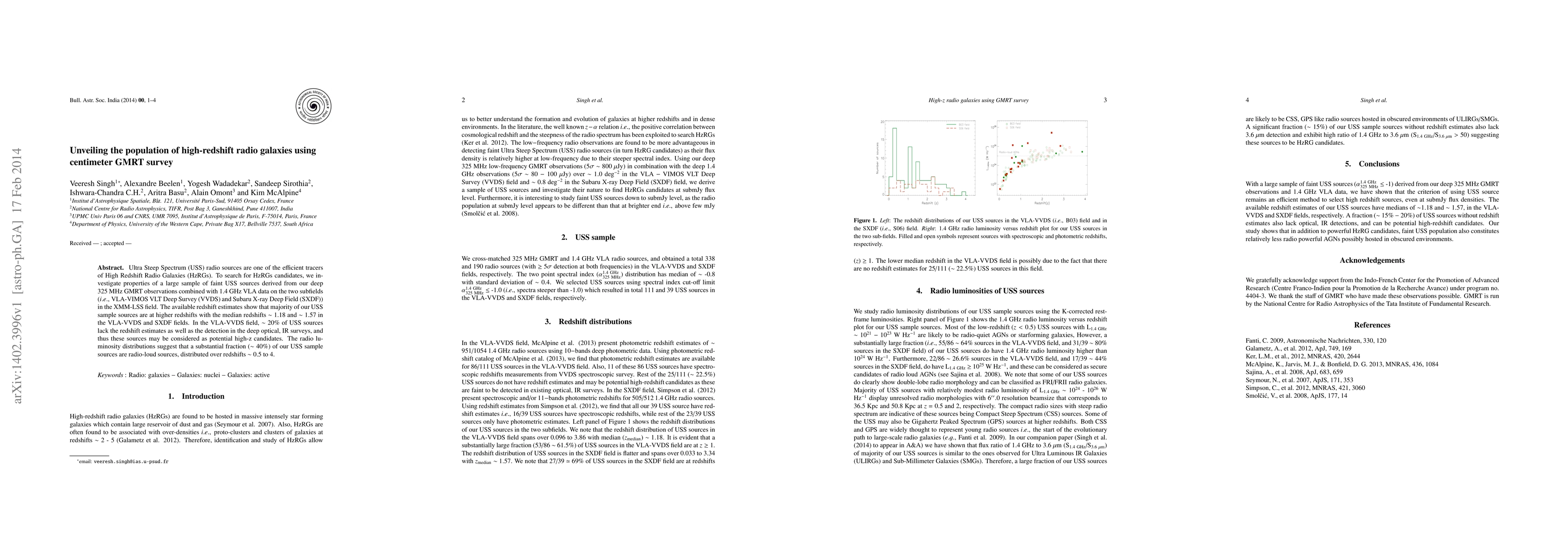 This study uses the GMRT survey to identify high-redshift radio galaxies by analyzing ultra steep spectrum radio sources, finding that most sources are at redshifts around 1.18 and 1.57. Approximately 20% of sources in one field lack redshift and optical detections, suggesting they could be high-z candidates.