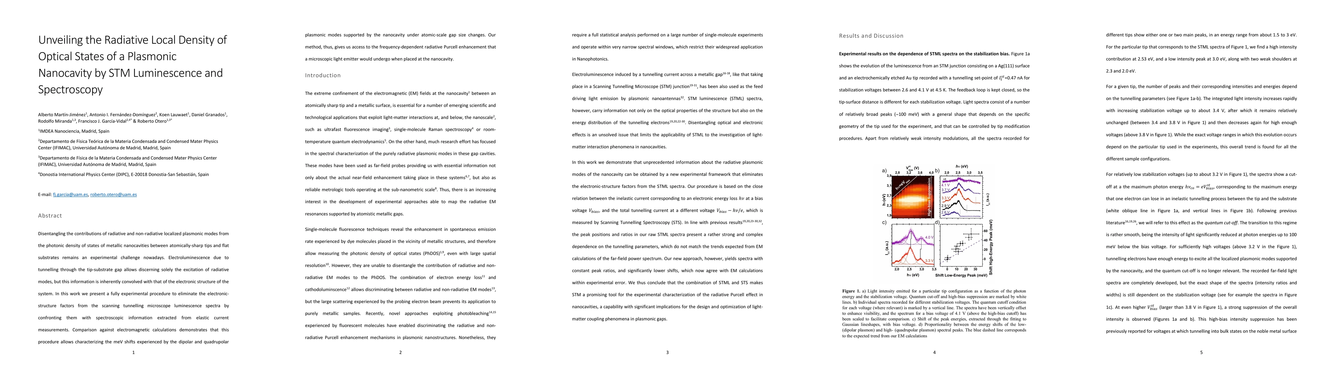 This paper presents an experimental method using STM luminescence and spectroscopy to isolate radiative local density of optical states in plasmonic nanocavities, eliminating electronic structure interferences. This approach reveals meV shifts in plasmonic modes and provides insights into the radiative Purcell enhancement for a light emitter in the nanocavity.
