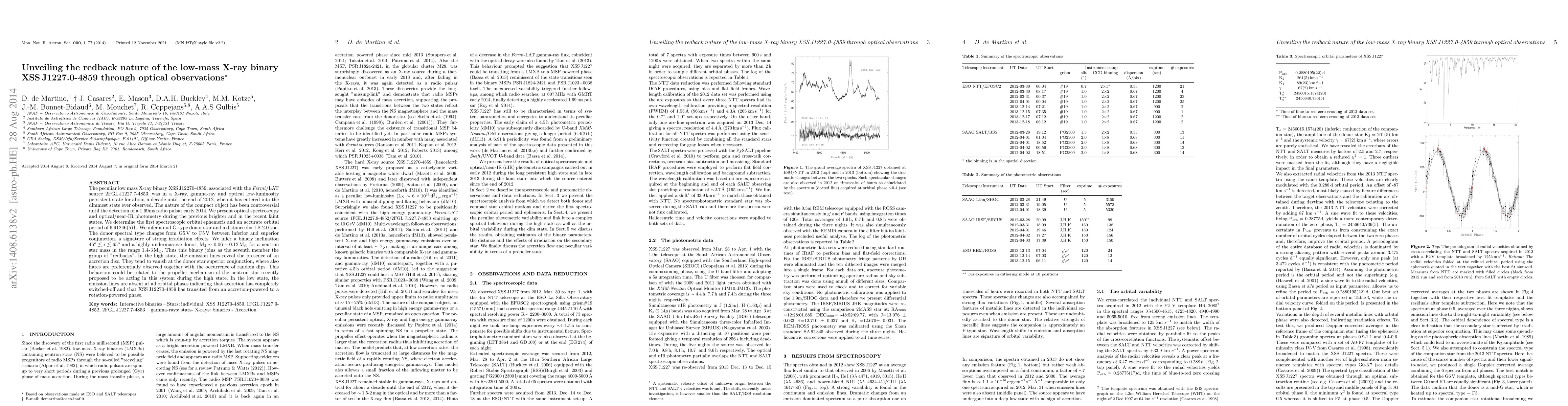 This paper reveals the nature of the low-mass X-ray binary XSSJ1227.0-4859 through optical observations, identifying it as a "redback" system with a neutron star and a highly undermassive donor star. The study shows that accretion has ceased in its low state, transitioning it to a rotation-powered phase.