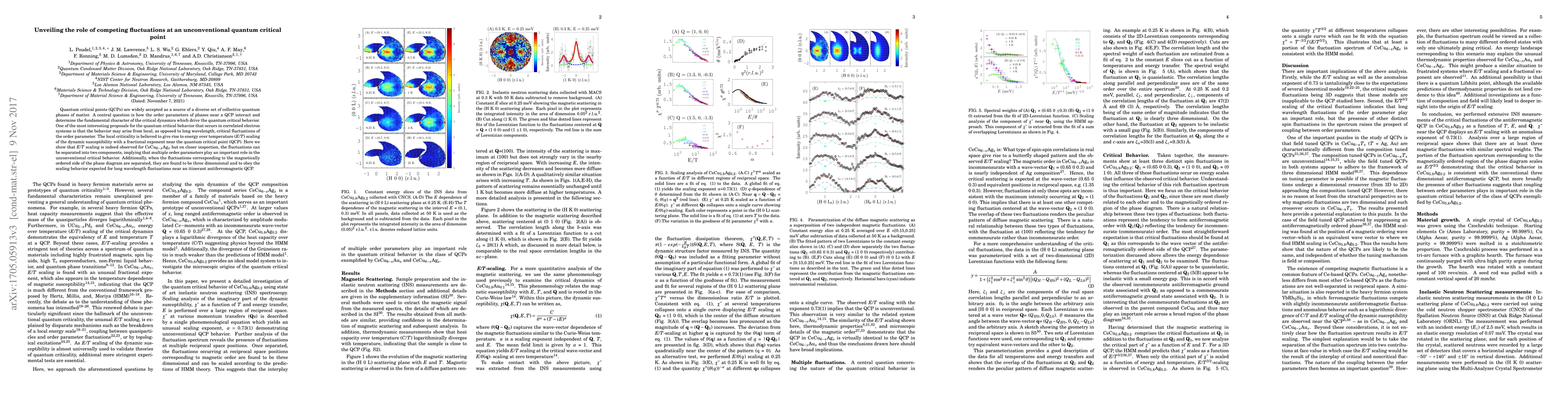 This paper investigates the quantum critical behavior in CeCu$_{6-x}$Ag$_x$, revealing $E/T$ scaling indicative of local critical fluctuations. However, it identifies two distinct fluctuation components, suggesting that multiple order parameters significantly influence the unconventional critical dynamics.