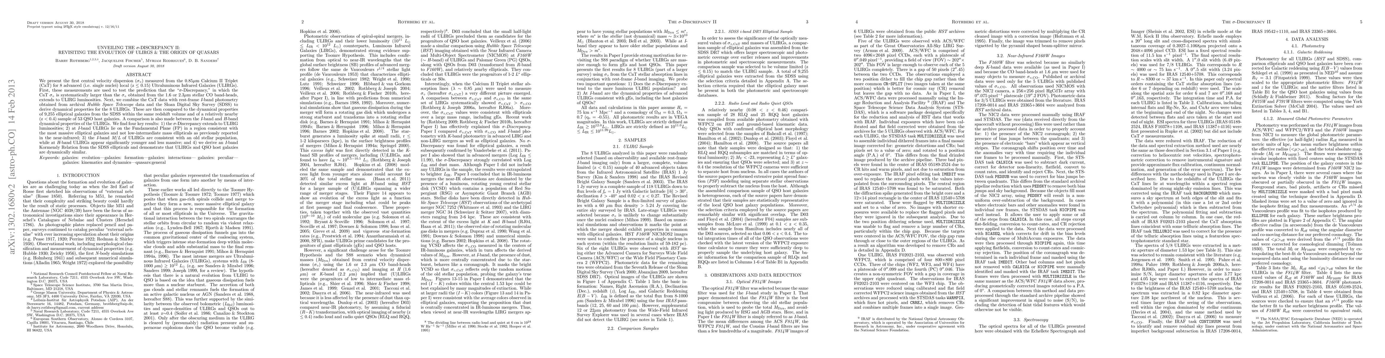 We present the first central velocity dispersions (sigma_o) measured from the 0.85 micron Calcium II Triplet (CaT) for 8 advanced (i.e. single nuclei) local (z < 0.15) Ultraluminous Infrared Galaxies (ULIRGs). First, these measurements are used to test the prediction that the "sigma-Discrepancy," in which the CaT sigma_o is systematically larger than the sigma_o obtained from the 1.6 or 2.3 micron stellar CO band-heads, extends to ULIRG luminosities. Next, we combine the CaT data with rest-frame I-band photometry obtained from archival Hubble Space Telescope data and the Sloan Digital Sky Survey (SDSS) to derive dynamical properties for the 8 ULIRGs. These are then compared to the dynamical properties of 9,255 elliptical galaxies from the SDSS within the same redshift volume and of a relatively nearby (z < 0.4) sample of 53 QSO host galaxies. A comparison is also made between the I-band and H-band dynamical properties of the ULIRGs. We find four key results: 1) the sigma-Discrepancy extends to ULIRG luminosities; 2) at I-band ULIRGs lie on the Fundamental Plane (FP) in a region consistent with the most massive elliptical galaxies and not low-intermediate mass ellipticals as previously reported in the near-infrared; 3) the I-band M/L of ULIRGs are consistent with an old stellar population, while at H-band ULIRGs appear significantly younger and less massive; and 4) we derive an I-band Kormendy Relation from the SDSS ellipticals and demonstrate that ULIRGs and QSO host galaxies are dynamically similar.