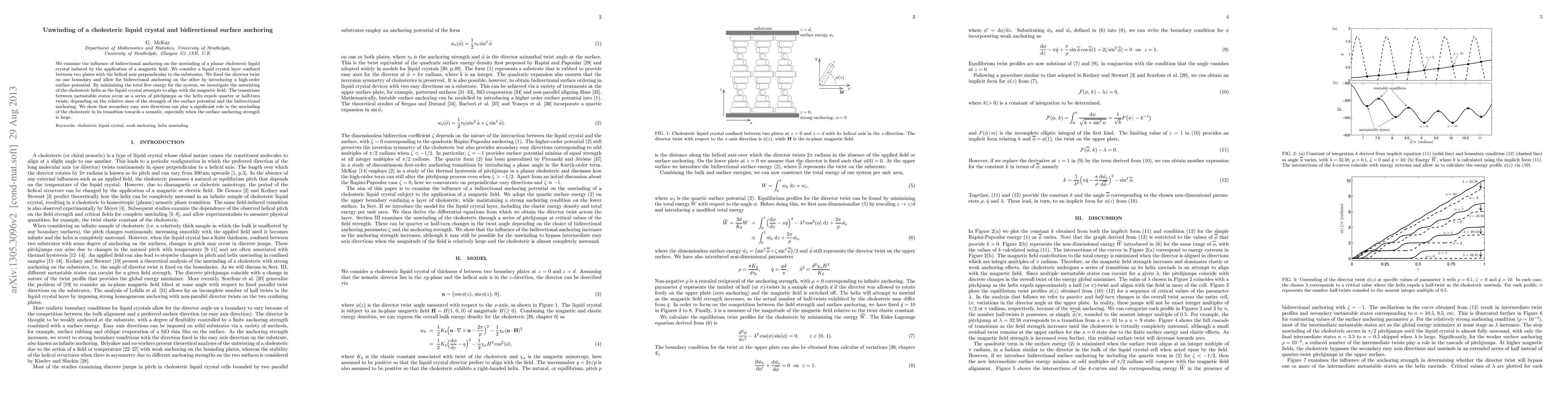 This paper investigates the unwinding of a cholesteric liquid crystal under a magnetic field, focusing on the effect of bidirectional surface anchoring. The study reveals that pitch jumps occur as the helix expels twists, with secondary easy axis directions significantly influencing the transition towards a nematic state, especially with strong surface anchoring.