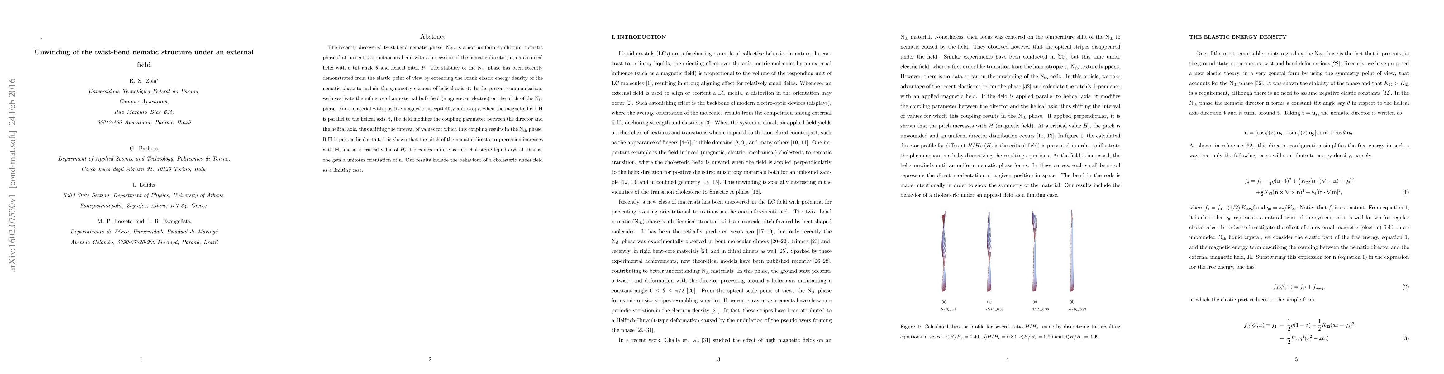 The recently discovered twist-bend nematic phase, $\rm N_{tb}$, is a non-uniform equilibrium nematic phase that presents a spontaneous bend with a precession of the nematic director, $\textbf{n}$, on a conical helix with a tilt angle $\theta$ and helical pitch $P$. The stability of the $\rm N_{tb}$ phase has been recently demonstrated from the elastic point of view by extending the Frank elastic energy density of the nematic phase to include the symmetry element of helical axis, $\bf t$. In the present communication, we investigate the influence of an external bulk field (magnetic or electric) on the pitch of the $\rm N_{tb}$ phase. For a material with positive magnetic susceptibility anisotropy, when the magnetic field $\bf{H}$ is parallel to the helical axis, $\bf{t}$, the field modifies the coupling parameter between the director and the helical axis, thus shifting the interval of values for which this coupling results in the $\rm N_{tb}$ phase. If $\bf{H}$ is perpendicular to $\bf{t}$, it is shown that the pitch of the nematic director $\bf n$ precession increases with $\bf{H}$, and at a critical value of $H_c$ it becomes infinite as in a cholesteric liquid crystal, that is, one gets a uniform orientation of n. Our results include the behaviour of a cholesteric under field as a limiting case.