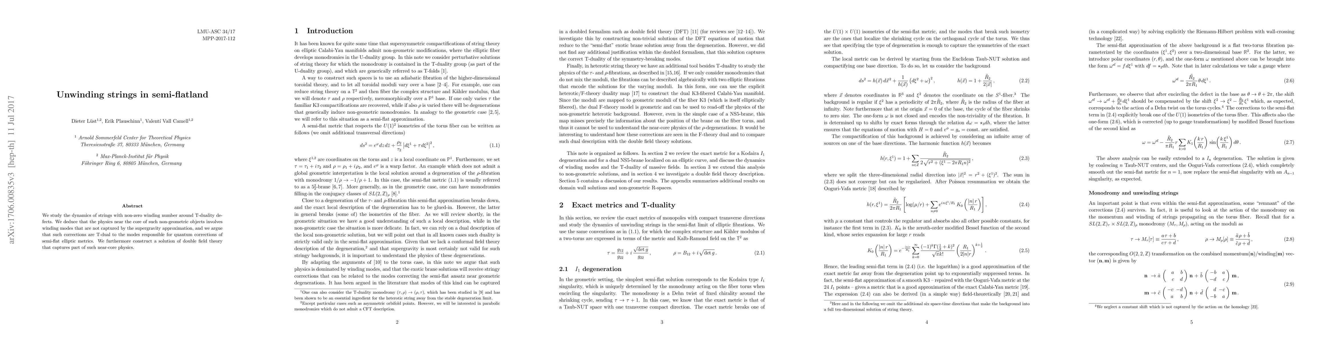 This paper explores the dynamics of strings with non-zero winding around T-duality defects, revealing winding modes not described by supergravity. It argues these corrections are T-dual to quantum corrections in semi-flat elliptic metrics and constructs a double field theory solution to capture near-core physics.