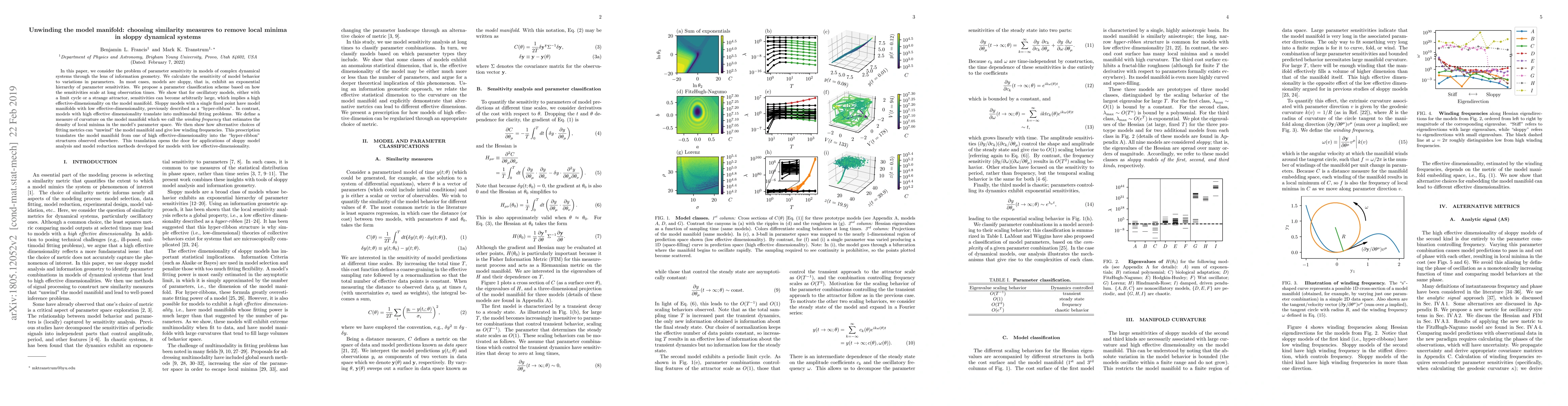 This paper addresses parameter sensitivity in complex dynamical systems, proposing a classification scheme for "sloppy" models based on sensitivity scaling. It introduces a winding frequency measure to quantify local minima density, demonstrating how alternative fitting metrics can simplify the model manifold, transforming high-dimensionality issues into more manageable "hyper-ribbon" structures.