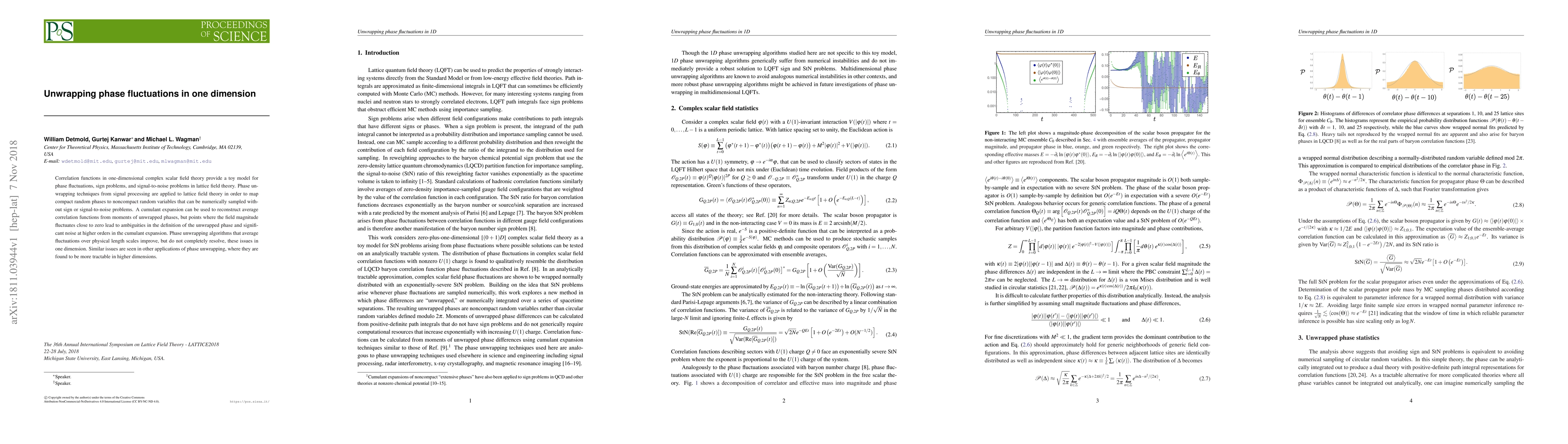 Correlation functions in one-dimensional complex scalar field theory provide a toy model for phase fluctuations, sign problems, and signal-to-noise problems in lattice field theory. Phase unwrapping techniques from signal processing are applied to lattice field theory in order to map compact random phases to noncompact random variables that can be numerically sampled without sign or signal-to-noise problems. A cumulant expansion can be used to reconstruct average correlation functions from moments of unwrapped phases, but points where the field magnitude fluctuates close to zero lead to ambiguities in the definition of the unwrapped phase and significant noise at higher orders in the cumulant expansion. Phase unwrapping algorithms that average fluctuations over physical length scales improve, but do not completely resolve, these issues in one dimension. Similar issues are seen in other applications of phase unwrapping, where they are found to be more tractable in higher dimensions.