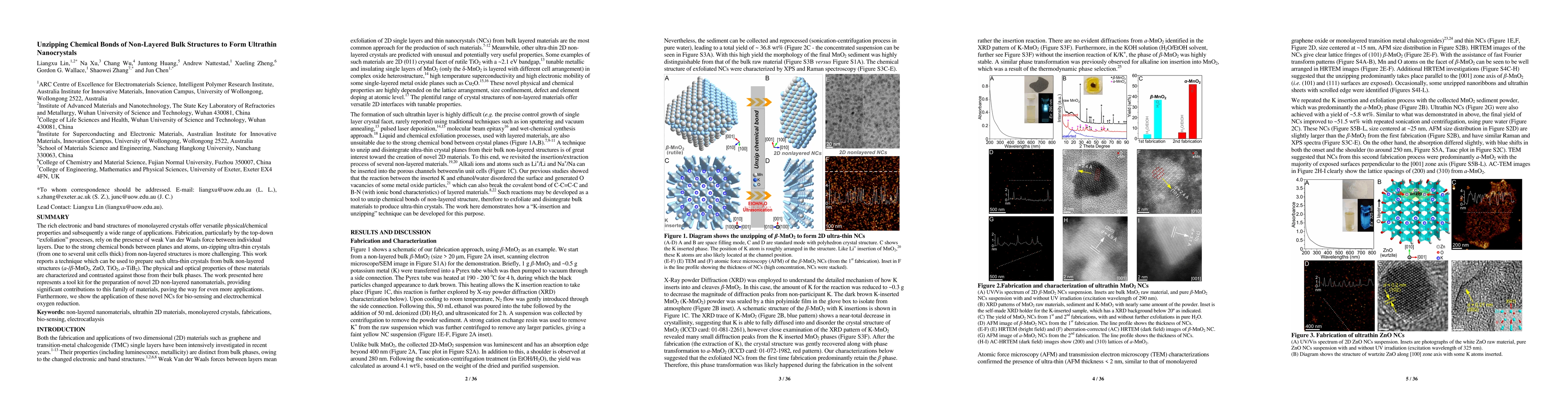 The rich electronic and band structures of monolayered crystals distinguished from their layered bulk counterparts offer versatile physical/chemical properties and applications.1-5 Their fabrications, particularly the top-down "exfoliations", are successful promised by the weak Van der Waals force between monolayers.6-9 Differentially, un-zipping ultra-thin crystals (e.g. with only one layer of crystal plane) from non-layered structures is highly challenging due to the strong chemical bond between planes and atoms. Alterative finely controlled growth of these ultra-thin materials is not really successful. This work demonstrates how a technique can be used to unzip and disintegrate ultra-thin crystal plane (e.g. monolayered nanocrystals and nanosheets) from bulk non-layered structures (ZnO, alpha/belta-MnO2, TiO2, alpha-TiB2), and present how the basic optical properties changed to distinguish from their bulk phases. The work here gives a strong tool kit to various novel 2D non-layered nanomaterials, providing significant contributions to the family of two-dimensional materials, potentially paving the way for various practical applications.