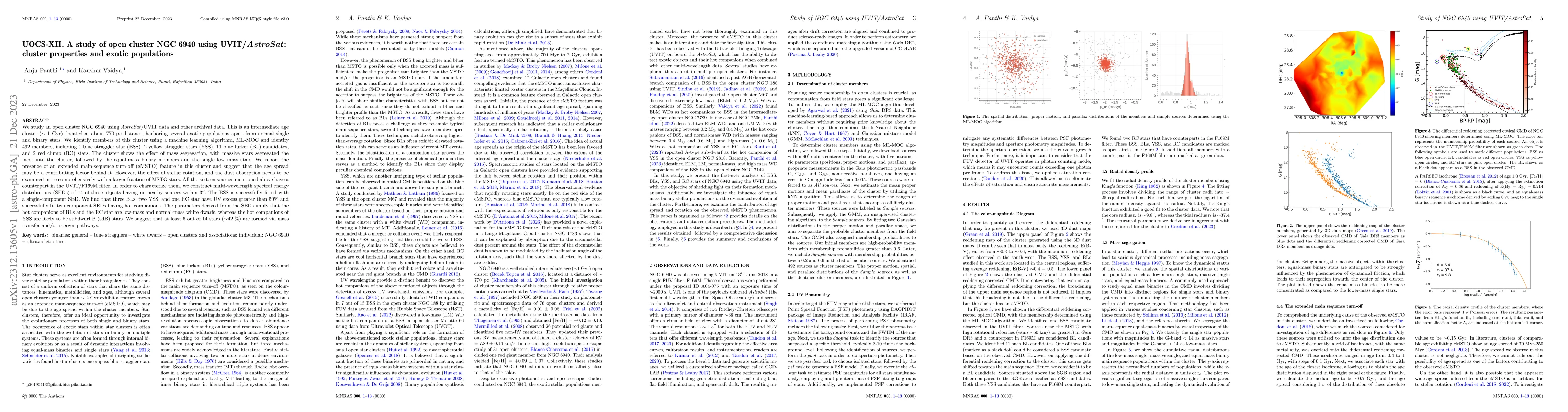 This study uses \textit{AstroSat}/UVIT data to analyze the open cluster NGC 6940, identifying 492 members including exotic populations like blue stragglers and binary stars. The cluster exhibits mass segregation and an extended main-sequence turn-off, suggesting age spread and the need for further investigation into stellar rotation and dust absorption.