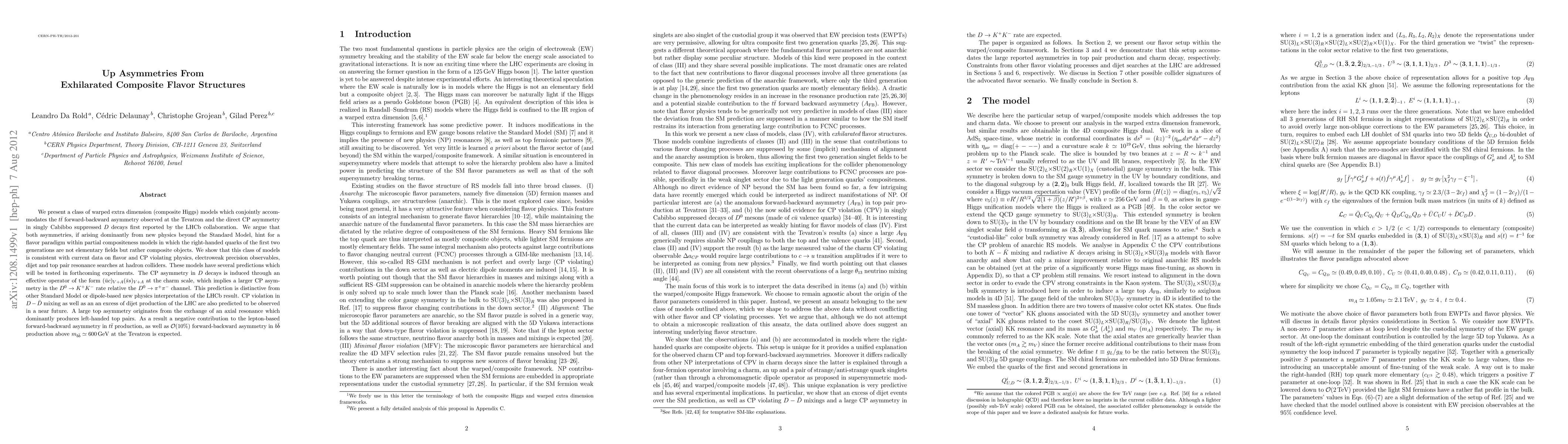 We present a class of warped extra dimension (composite Higgs) models which conjointly accommodates the t\bar t forward-backward asymmetry observed at the Tevatron and the direct CP asymmetry in singly Cabibbo suppressed D decays first reported by the LHCb collaboration. We argue that both asymmetries, if arising dominantly from new physics beyond the Standard Model, hint for a flavor paradigm within partial compositeness models in which the right-handed quarks of the first two generations are not elementary fields but rather composite objects. We show that this class of models is consistent with current data on flavor and CP violating physics, electroweak precision observables, dijet and top pair resonance searches at hadron colliders. These models have several predictions which will be tested in forthcoming experiments. The CP asymmetry in D decays is induced through an effective operator of the form (\bar u c)_{V+A}(\bar s s)_{V+A} at the charm scale, which implies a larger CP asymmetry in the D^0\to K^+K^- rate relative the D^0\to \pi^+\pi^- channel. This prediction is distinctive from other Standard Model or dipole-based new physics interpretation of the LHCb result. CP violation in D-\bar D mixing as well as an an excess of dijet production of the LHC are also predicted to be observed in a near future. A large top asymmetry originates from the exchange of an axial resonance which dominantly produces left-handed top pairs. As a result a negative contribution to the lepton-based forward-backward asymmetry in t\bar t production, as well as O(10%) forward-backward asymmetry in b\bar b production above m_{b\bar b}\simeq 600GeV at the Tevatron is expected.