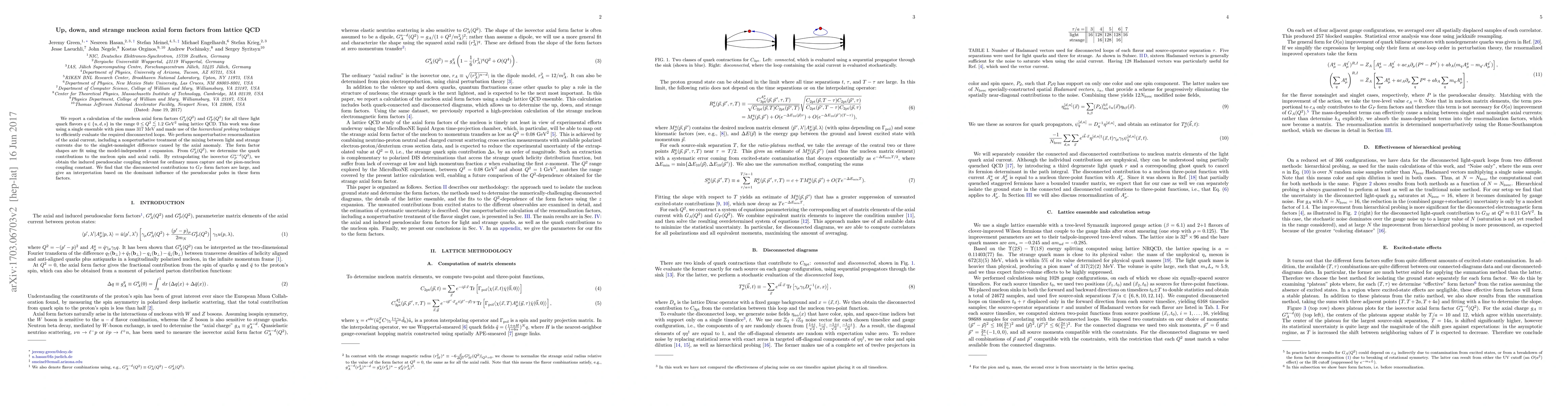 This paper reports a lattice QCD calculation of nucleon axial form factors for all three light quarks, determining quark contributions to nucleon spin and axial radii, and analyzing the induced pseudoscalar coupling and pion-nucleon coupling constant. The study highlights significant disconnected contributions to the pseudoscalar form factors.