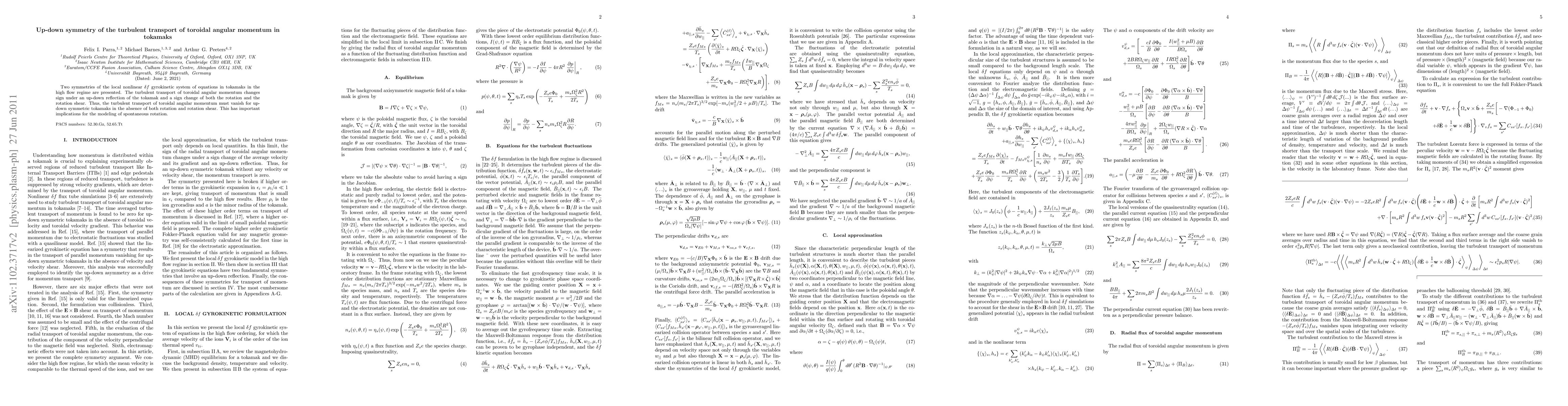 Summary: The study reveals that the turbulent transport of toroidal angular momentum in tokamaks exhibits up-down symmetry, changing sign under specific reflections and conditions, which implies that such transport vanishes in symmetric tokamaks without rotation or rotation shear, impacting models of spontaneous rotation.