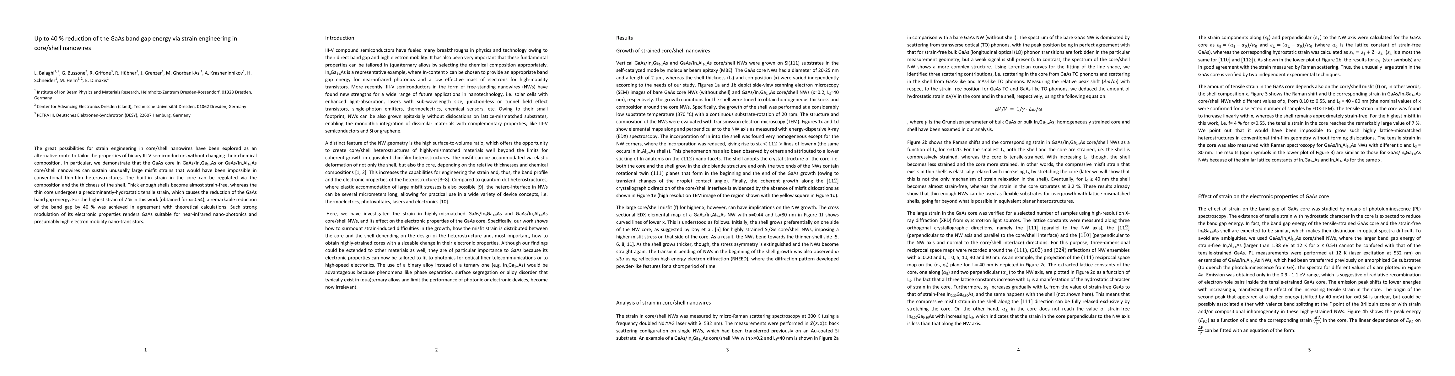 This paper explores the use of strain engineering in core/shell nanowires to significantly reduce the GaAs band gap energy by up to 40%. The study shows that large misfit strains in GaAs cores can be controlled by the shell's composition and thickness, enabling potential applications in near-infrared nano-photonics and high electron mobility nano-transistors.