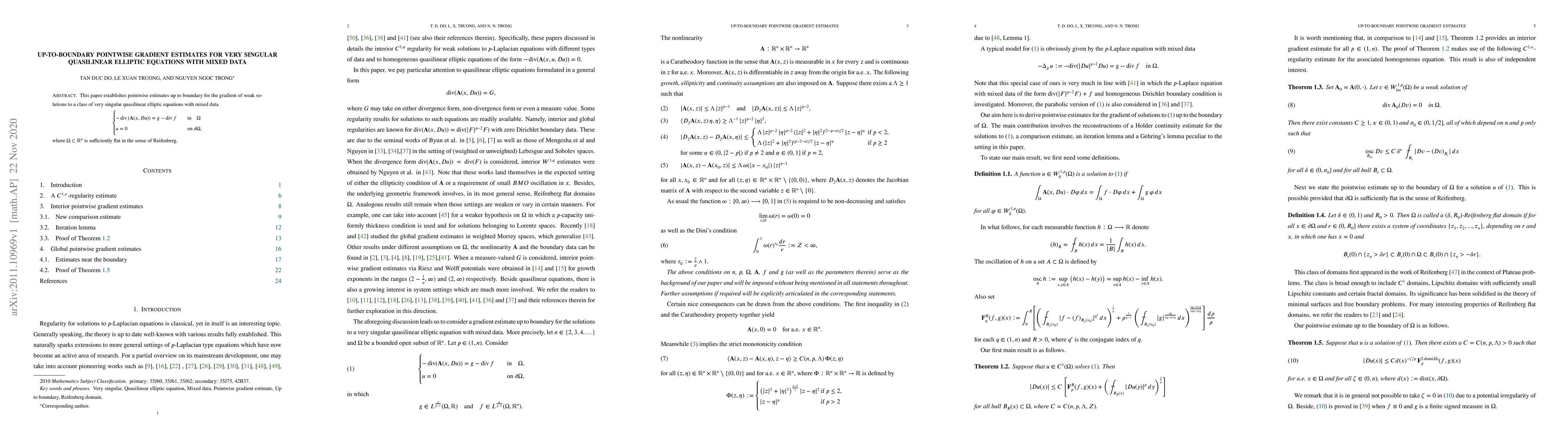 This paper provides pointwise gradient estimates up to the boundary for weak solutions of very singular quasilinear elliptic equations with mixed data, under the condition that the domain is sufficiently flat in the Reifenberg sense. The results apply to equations of the form \(-\operatorname{div}(A(x,D u))=g-\operatorname{div} f\) with \(u = 0\) on the boundary.