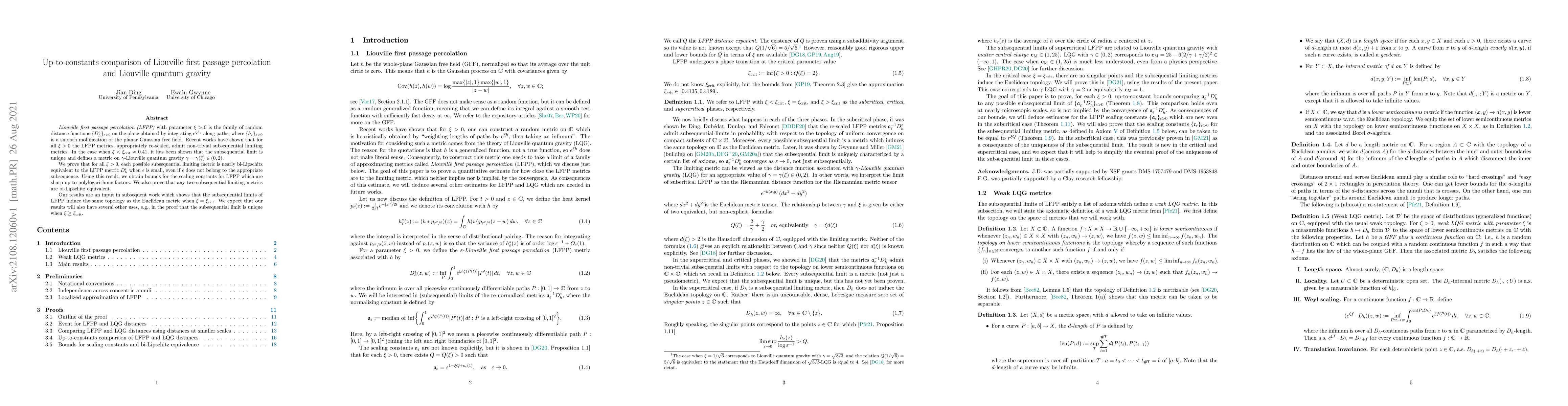 Researchers prove that Liouville first passage percolation metrics are nearly bi-Lipschitz equivalent to their subsequential limiting metrics, providing bounds for scaling constants and implications for the topology of these metrics.