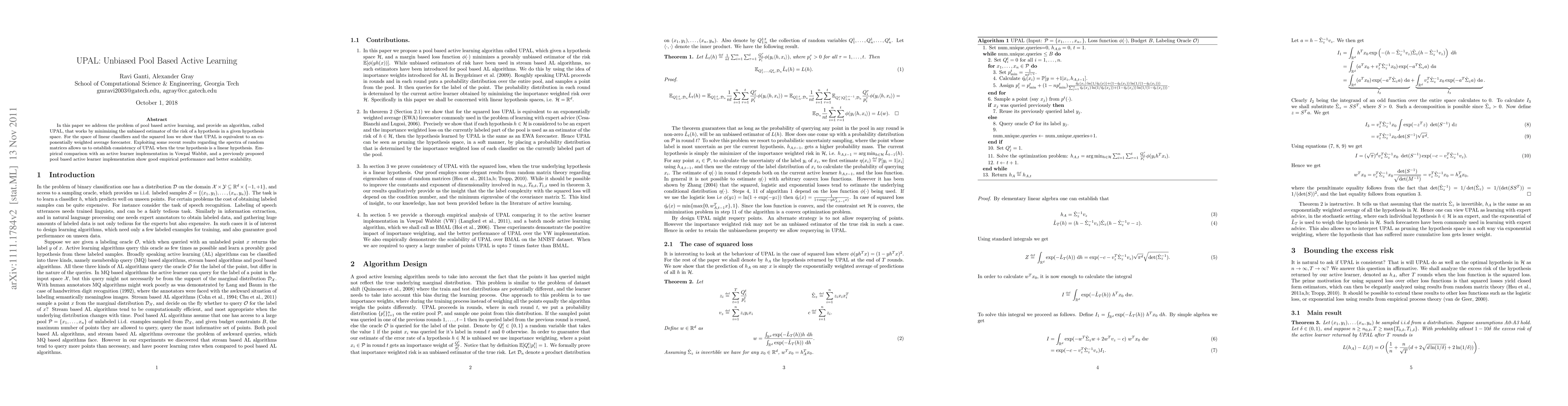 This paper introduces UPAL, an algorithm for pool-based active learning that minimizes the unbiased estimator of risk for linear classifiers, demonstrating equivalence to an exponentially weighted average forecaster. Empirical results show UPAL's superior scalability and performance compared to existing active learners.