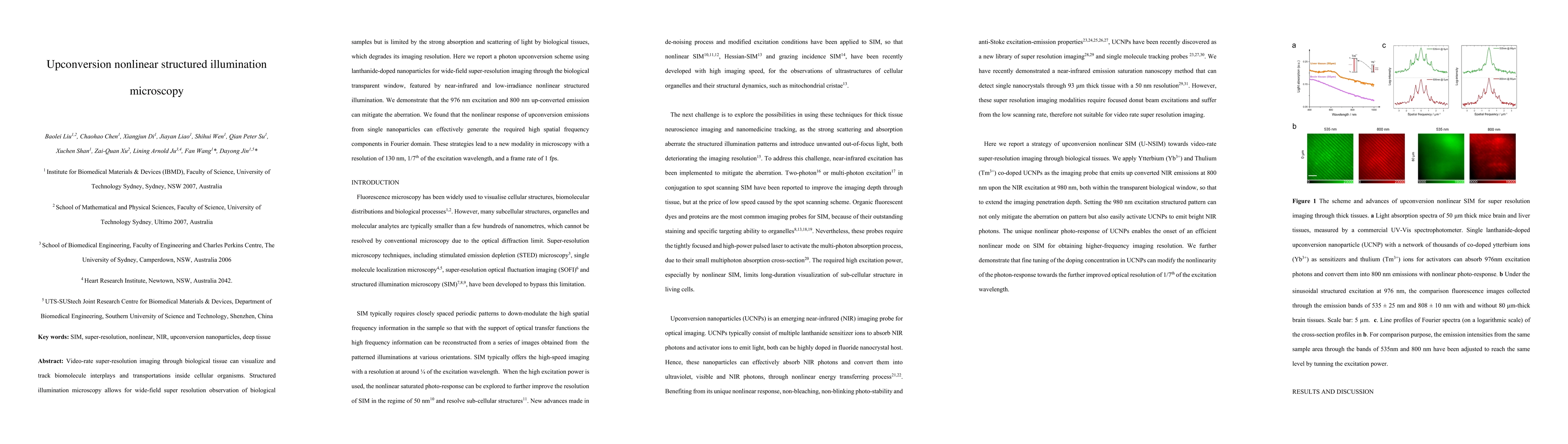 This work presents a new approach to super-resolution microscopy that combines the benefits of structured illumination with the unique properties of upconversion nanoparticles.