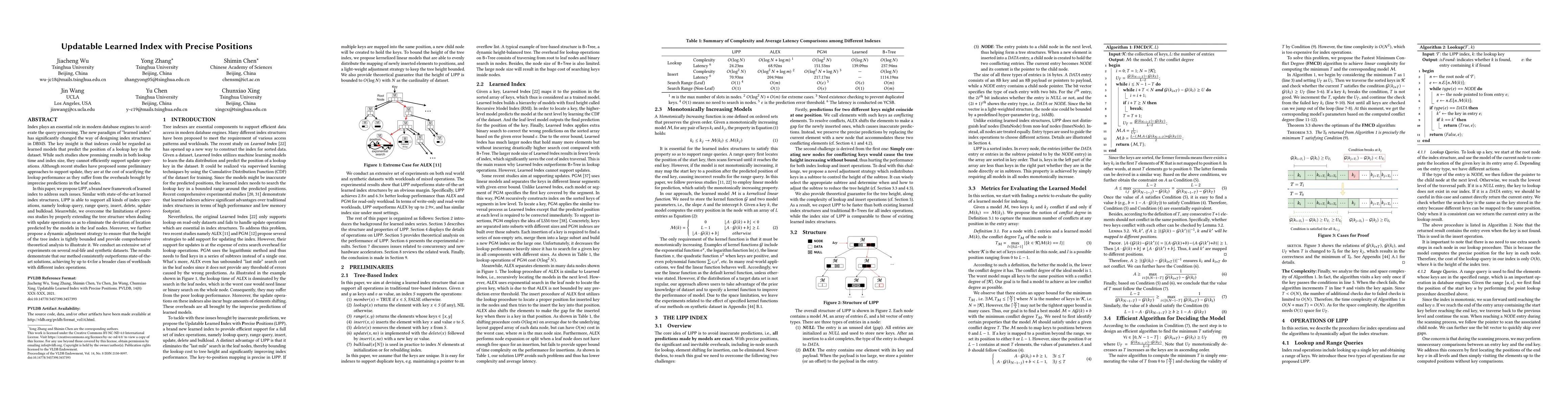 This paper introduces LIPP, a novel framework for learned indexes that efficiently supports update operations without compromising lookup performance. Unlike previous approaches, LIPP extends the tree structure during updates to eliminate prediction errors, and employs a dynamic adjustment strategy to maintain a bounded tree height, achieving up to 4x performance improvement across various workloads.