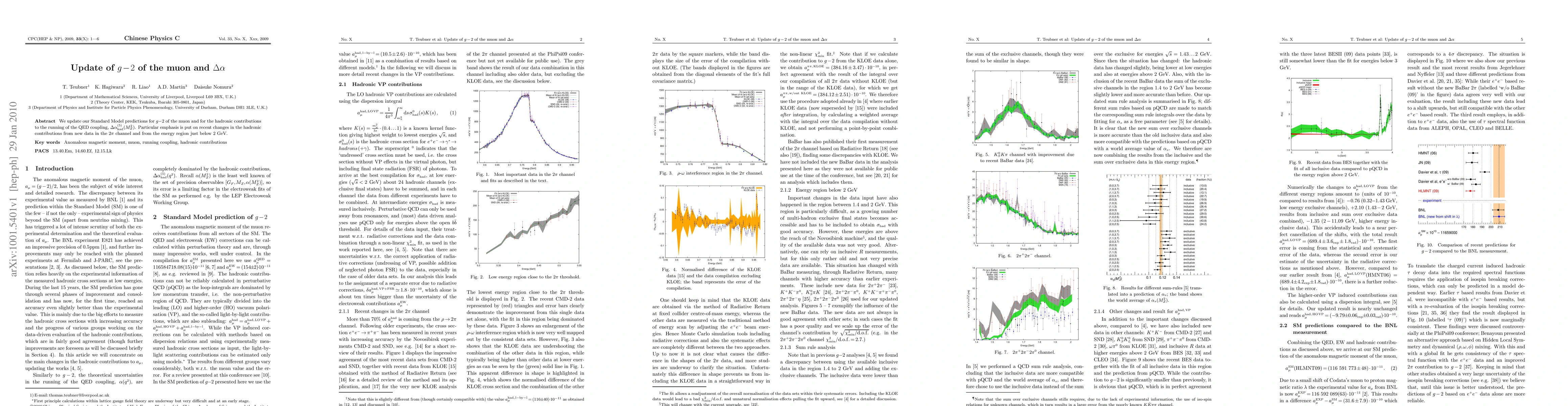 This paper updates Standard Model predictions for the muon's g-2 and the hadronic contributions to the running of the QED coupling, focusing on recent data changes in the 2pi channel and the energy region just below 2 GeV. The new findings refine the understanding of these contributions.