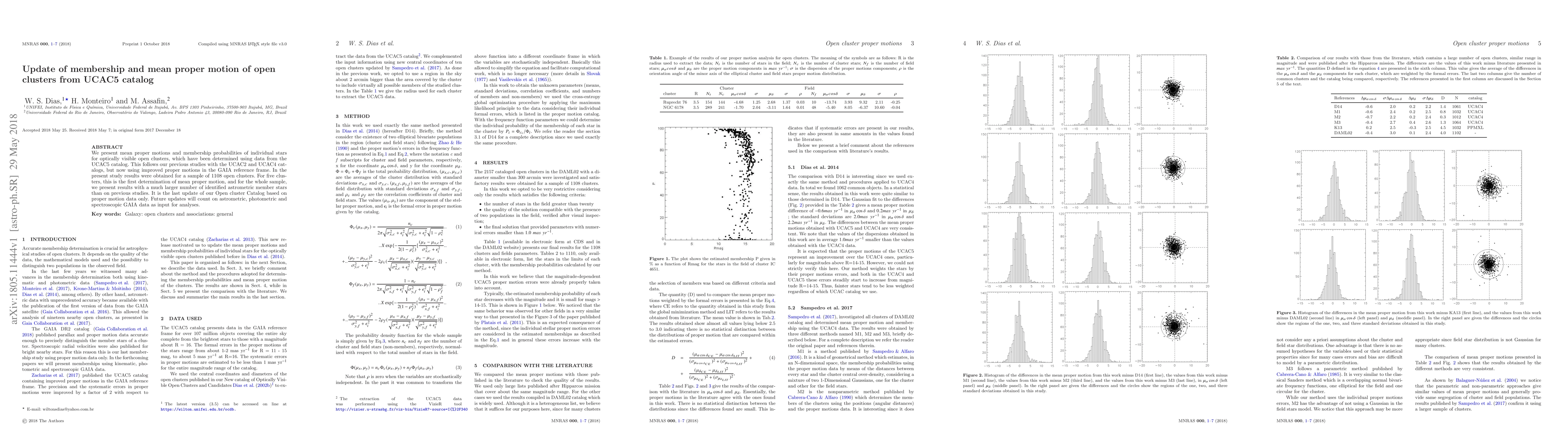 This study updates membership and mean proper motion of 1108 open clusters using UCAC5 catalog data, providing first determinations for five clusters and a larger number of identified member stars than previous studies. It's the final proper motion-based update to the Open Cluster Catalog, with future updates anticipating use of GAIA astrometric, photometric, and spectroscopic data.