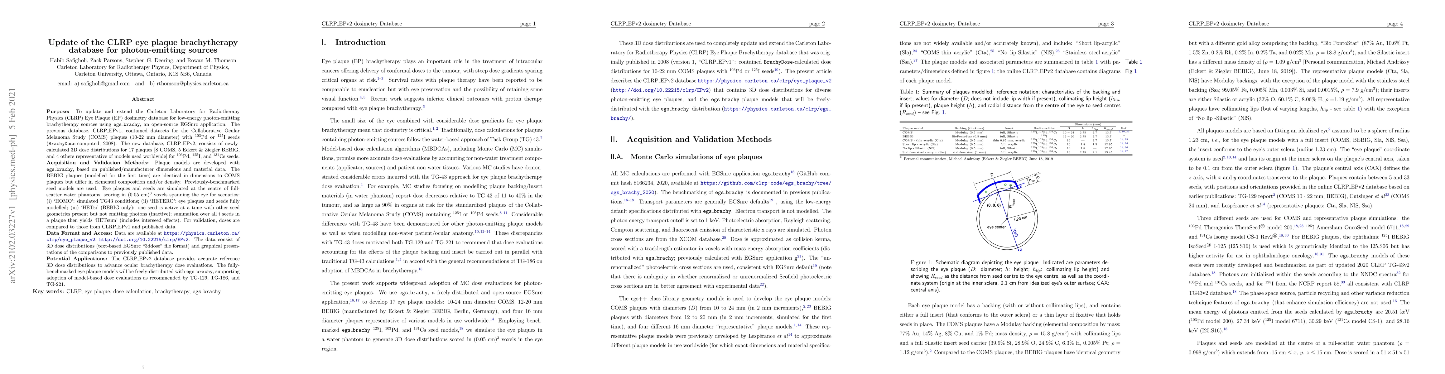 This paper updates the CLRP Eye Plaque dosimetry database for low-energy photon-emitting brachytherapy sources, introducing CLRP EPv2 with 3D dose distributions for 17 plaques using egs_brachy. The new database aims to advance ocular brachytherapy dose evaluations and is freely available for model-based dose evaluations.