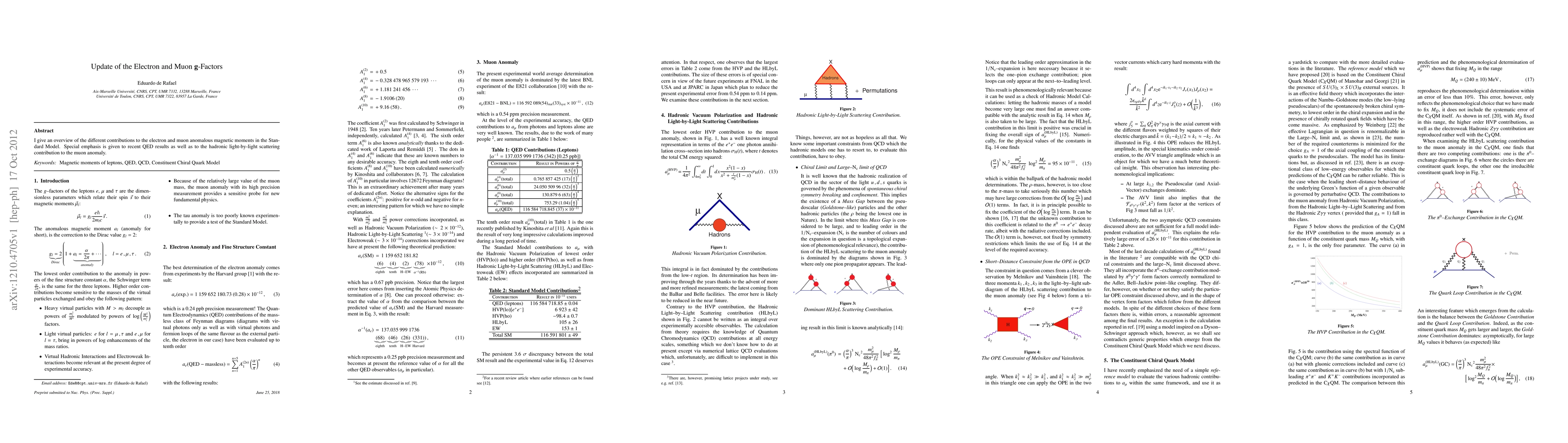 I give an overview of the different contributions to the electron and muon anomalous magnetic moments in the Standard Model. Special emphasis is given to recent QED results as well as to the hadronic light-by-light scattering contribution to the muon anomaly.