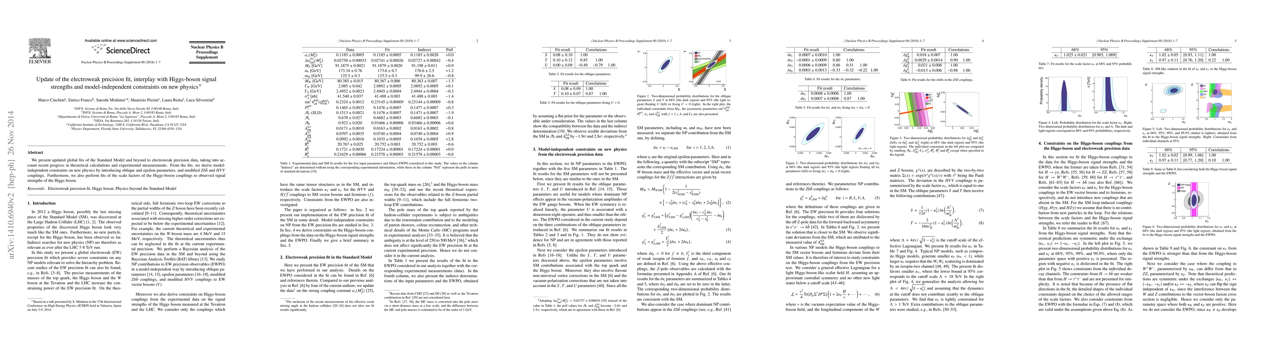 This paper updates global fits of the Standard Model and beyond using recent electroweak precision data, deriving model-independent constraints on new physics through oblique and epsilon parameters. It also examines the Higgs-boson signal strengths and their relation to modified couplings.