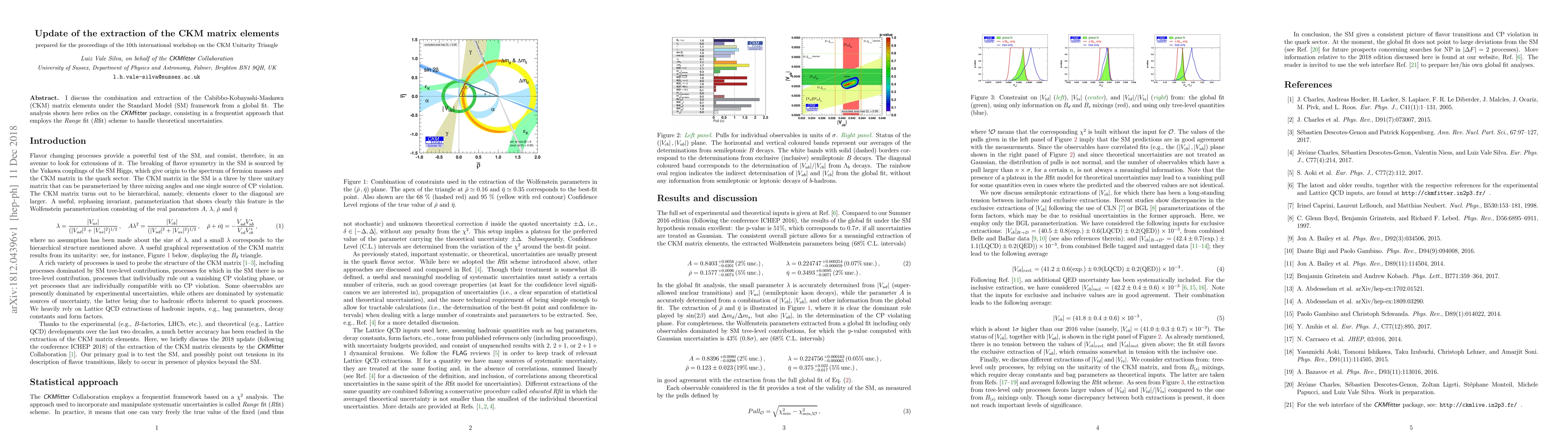 Researchers updated the extraction of Cabibbo-Kobayashi-Maskawa matrix elements using a global fit under the Standard Model framework, employing a frequentist approach to handle theoretical uncertainties.