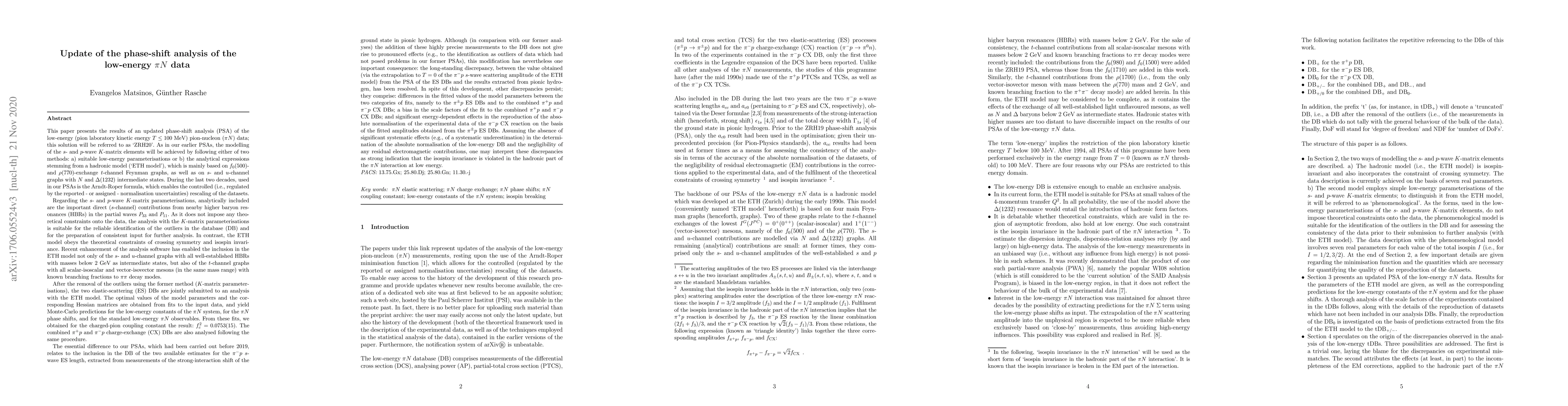 This paper presents the results of an updated phase-shift analysis of the low-energy (pion laboratory kinetic energy $T \leq 100$ MeV) pion-nucleon data; this solution will be referred to as `ZRH20'.