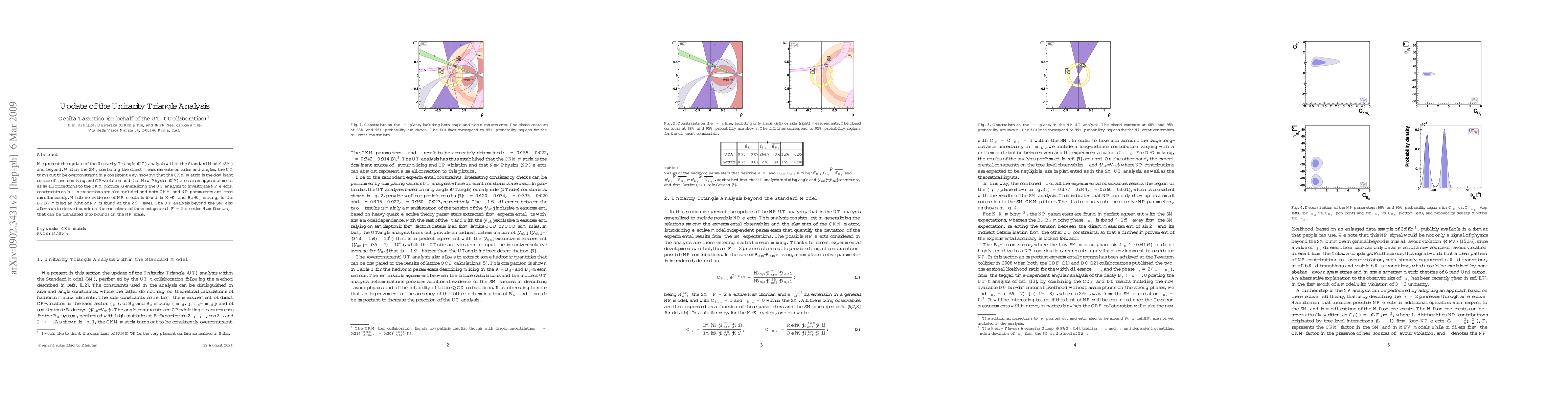 We present the update of the Unitarity Triangle (UT) analysis within the Standard Model (SM) and beyond. Within the SM, combining the direct measurements on sides and angles, the UT turns out to be overconstraint in a consistent way, showing that the CKM matrix is the dominant source of flavour mixing and CP-violation and that New Physics (NP) effects can appear at most as small corrections to the CKM picture. Generalizing the UT analysis to investigate NP effects, constraints on b -> s transitions are also included and both CKM and NP parameters are fitted simultaneously. While no evidence of NP effects is found in K-\bar K and B_d-\bar B_d mixing, in the B_s-\bar B_s mixing an hint of NP is found at the 2.9 \sigma level. The UT analysis beyond the SM also allows us to derive bounds on the coefficients of the most general \Delta F=2 effective Hamiltonian, that can be translated into bounds on the NP scale.