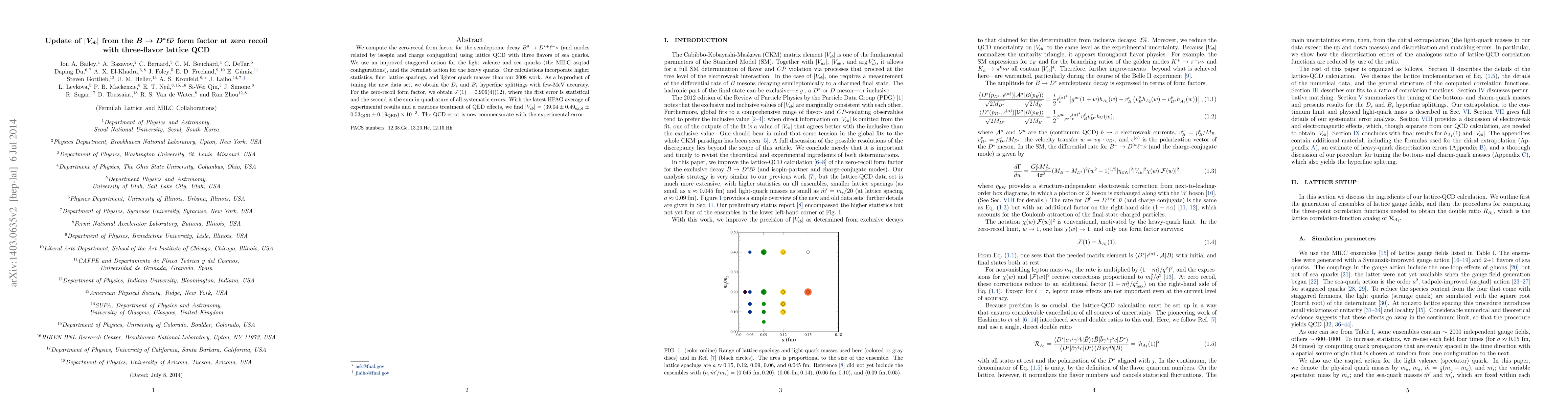 Researchers calculated the zero-recoil form factor for a specific particle decay using lattice QCD and found |Vcb| = 39.04 x 10^-3 with an error of 0.49 exp + 0.53 QCD + 0.19 QED.