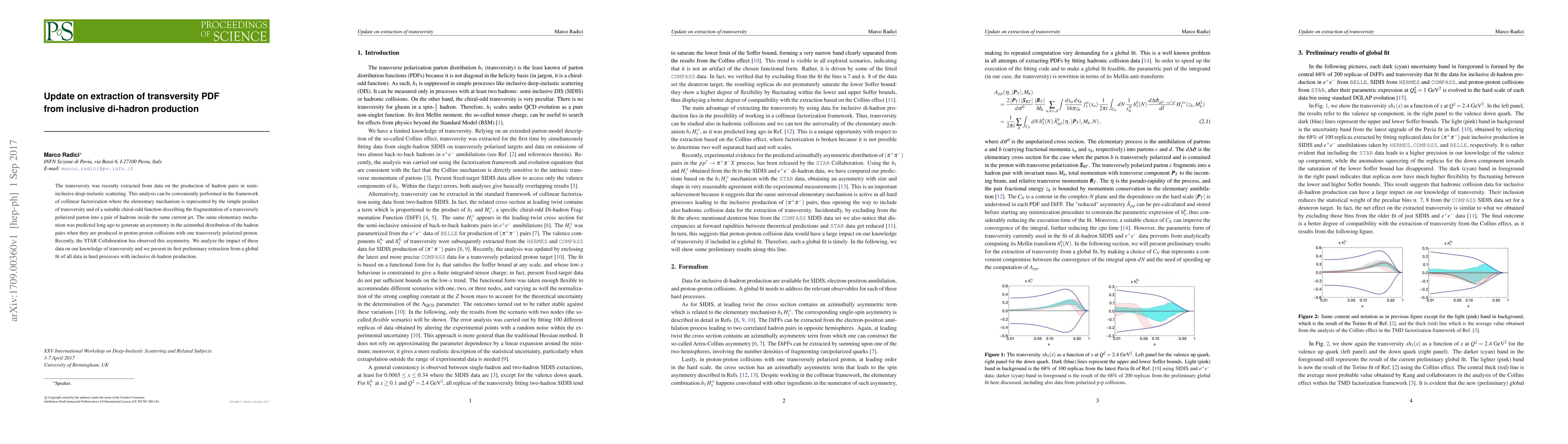 This paper updates the extraction of the transversity parton distribution function (PDF) from inclusive di-hadron production data, utilizing the framework of collinear factorization and analyzing recent observations of asymmetry in proton-proton collisions by the STAR Collaboration. The preliminary extraction of transversity is presented from a global fit incorporating all relevant hard process data.