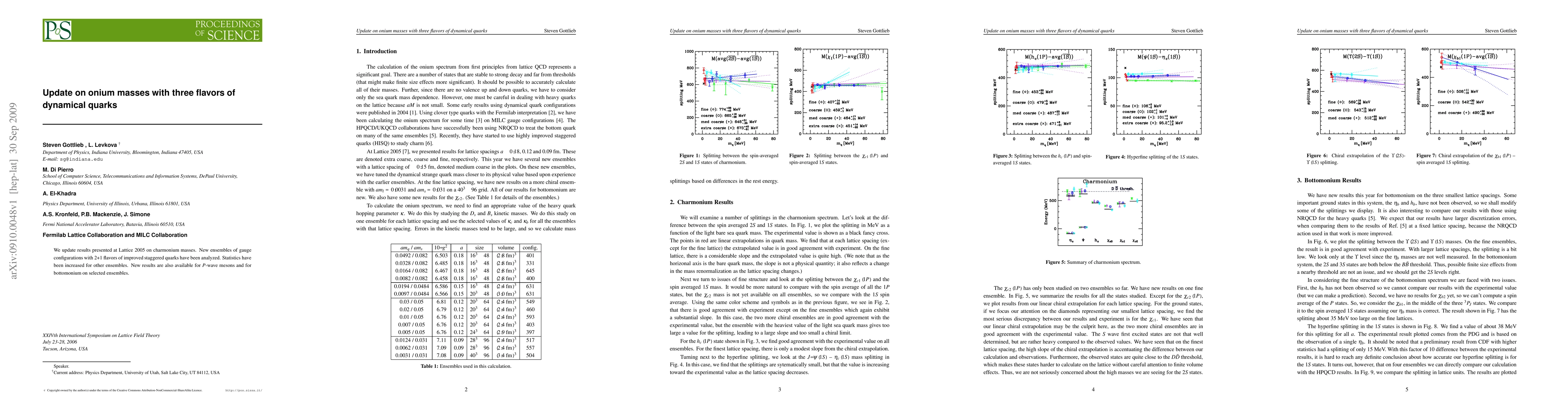 This paper updates charmonium mass measurements using improved staggered quark ensembles with 2+1 flavors, increasing statistical data and presenting new findings for P-wave mesons and selected bottomonium states.