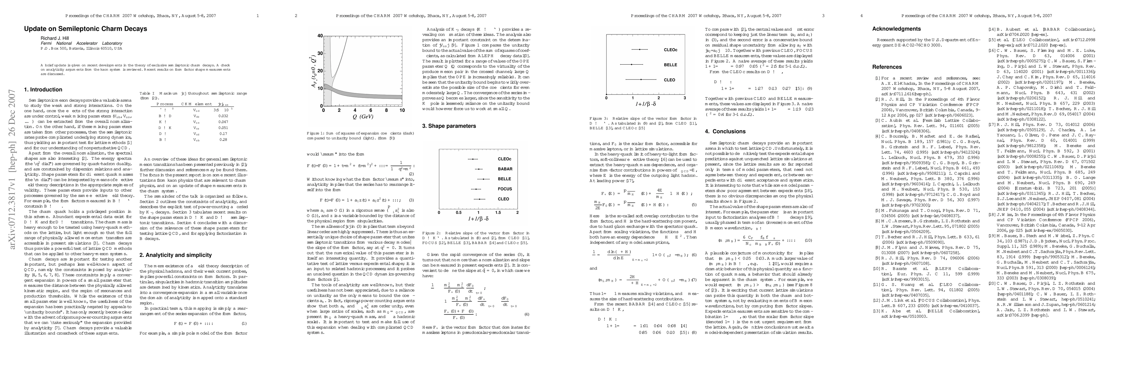 A brief update is given on recent developments in the theory of exclusive semileptonic charm decays. A check on analyticity arguments from the kaon system is reviewed. Recent results on form factor shape measurements are discussed.