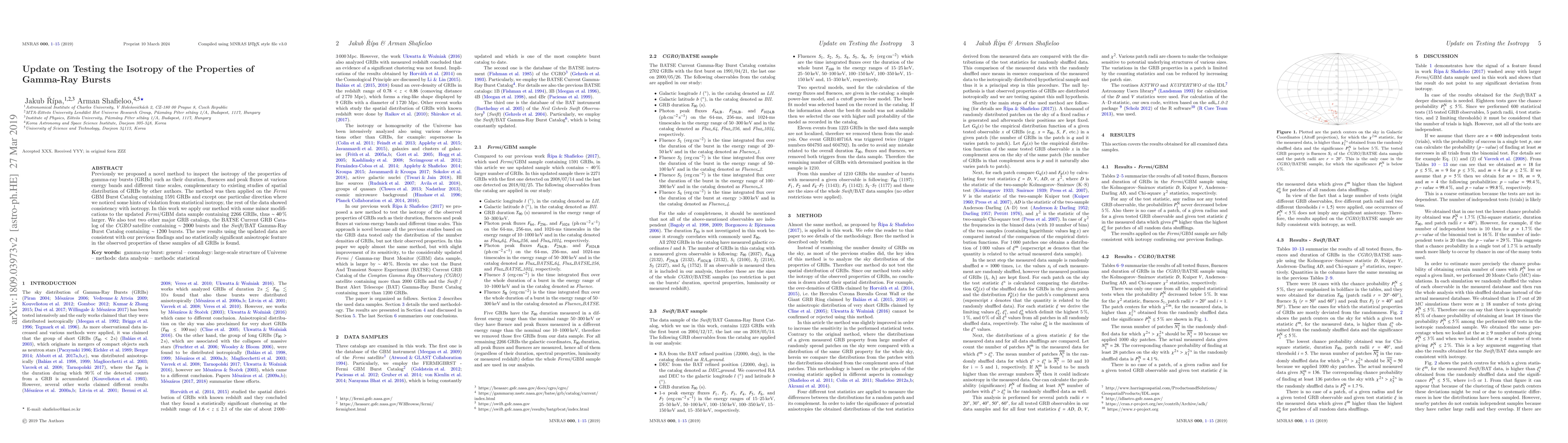 Previously we proposed a novel method to inspect the isotropy of the properties of gamma-ray bursts (GRBs) such as their duration, fluences and peak fluxes at various energy bands and different time scales, complementary to existing studies of spatial distribution of GRBs by other authors. The method was then applied on the Fermi GBM Burst Catalog containing 1591 GRBs and except one particular direction where we noticed some hints of violation from statistical isotropy, the rest of the data showed consistency with isotropy. In this work we apply our method with some minor modifications to the updated Fermi/GBM data sample containing 2266 GRBs, thus $\sim 40$ % larger. We also test two other major GRB catalogs, the BATSE Current GRB Catalog of the CGRO satellite containing $\sim 2000$ bursts and the Swift/BAT Gamma-Ray Burst Catalog containing $\sim 1200$ bursts. The new results using the updated data are consistent with our previous findings and no statistically significant anisotropic feature in the observed properties of these samples of all GRBs is found.