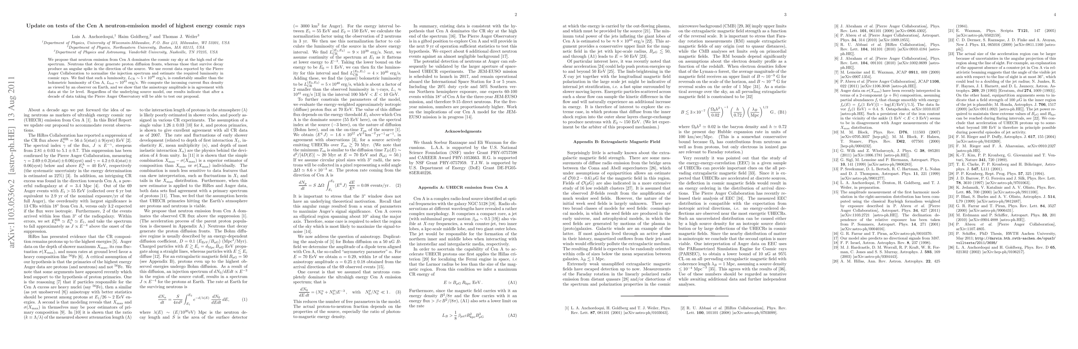 This research proposes that neutrons from Cen A significantly contribute to high-energy cosmic rays, estimating a required cosmic ray luminosity (L_{CR} ~ 5 x 10^{40} erg/s) much smaller than Cen A's total luminosity (L_{bol} ~ 10^{43} erg/s). The study computes the incoming flux density and finds agreement with Auger Observatory data, suggesting future tests of this proposal with more data.