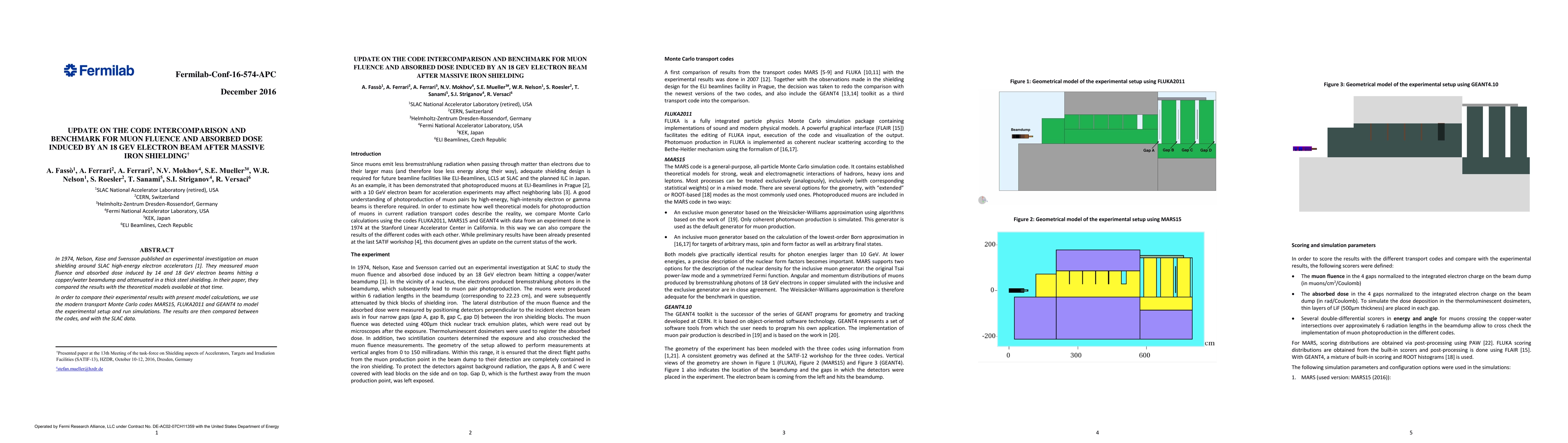 The research uses Monte Carlo transport codes MARS15, FLUKA, and GEANT4 to model the experimental conditions of an 18 GeV electron beam hitting a copper-water target, as originally investigated by Nelson, Kase, and Svensson in 1974.